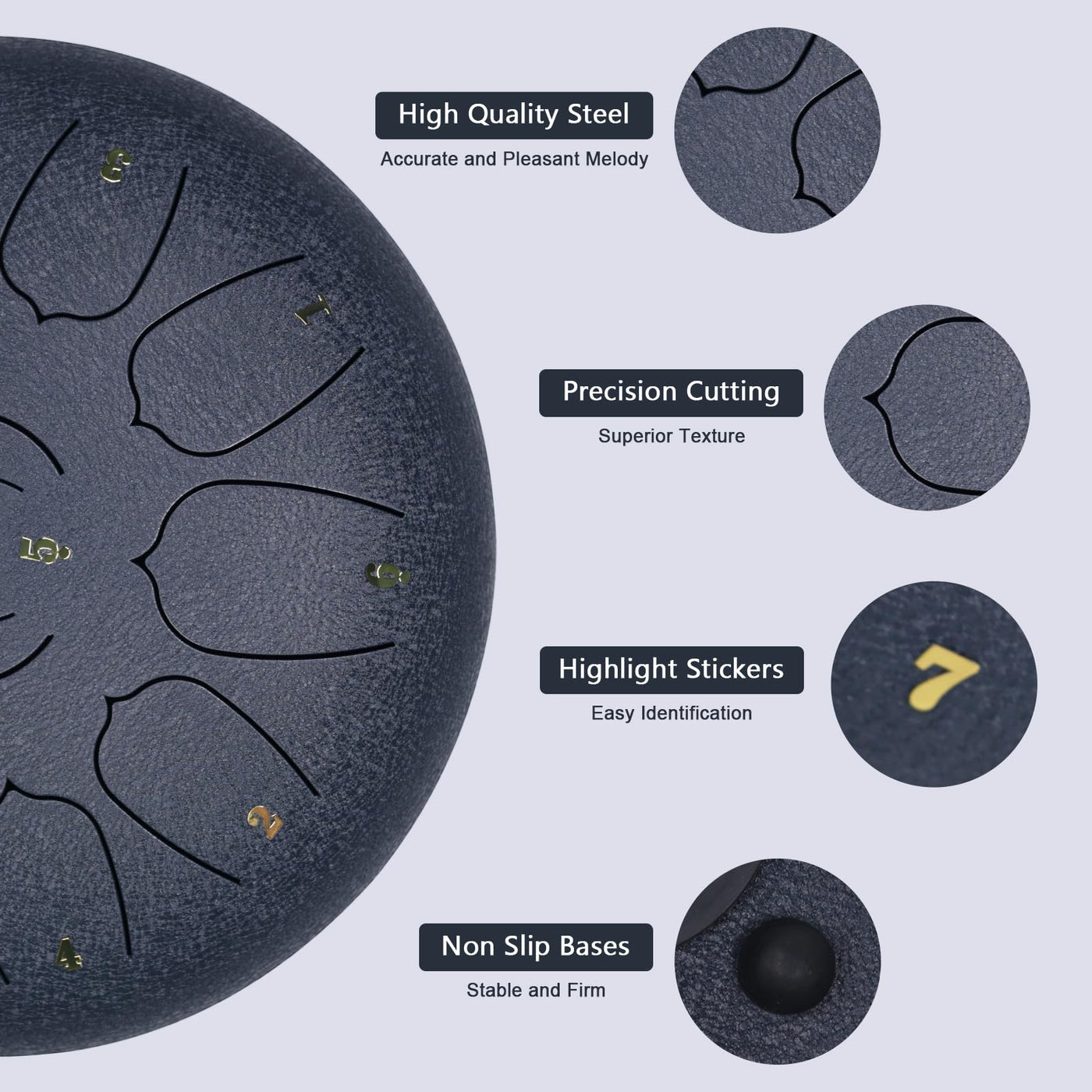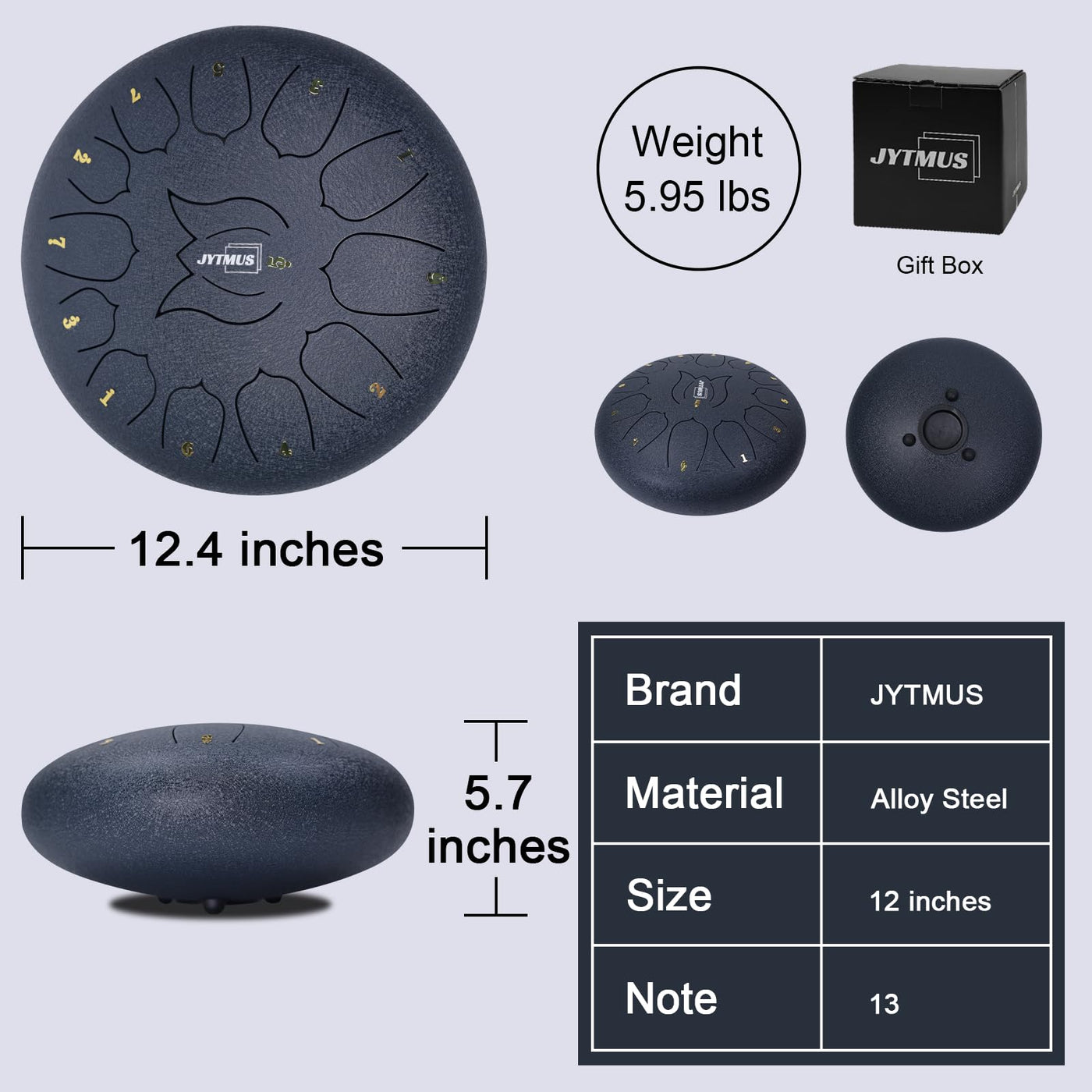 Jytmus Steel Tongue Drum 13 Notes 12 Inches Steel Drum With Drum Bag, Music Book, Drum Mallets, Mallet Holder, Finger Picks And