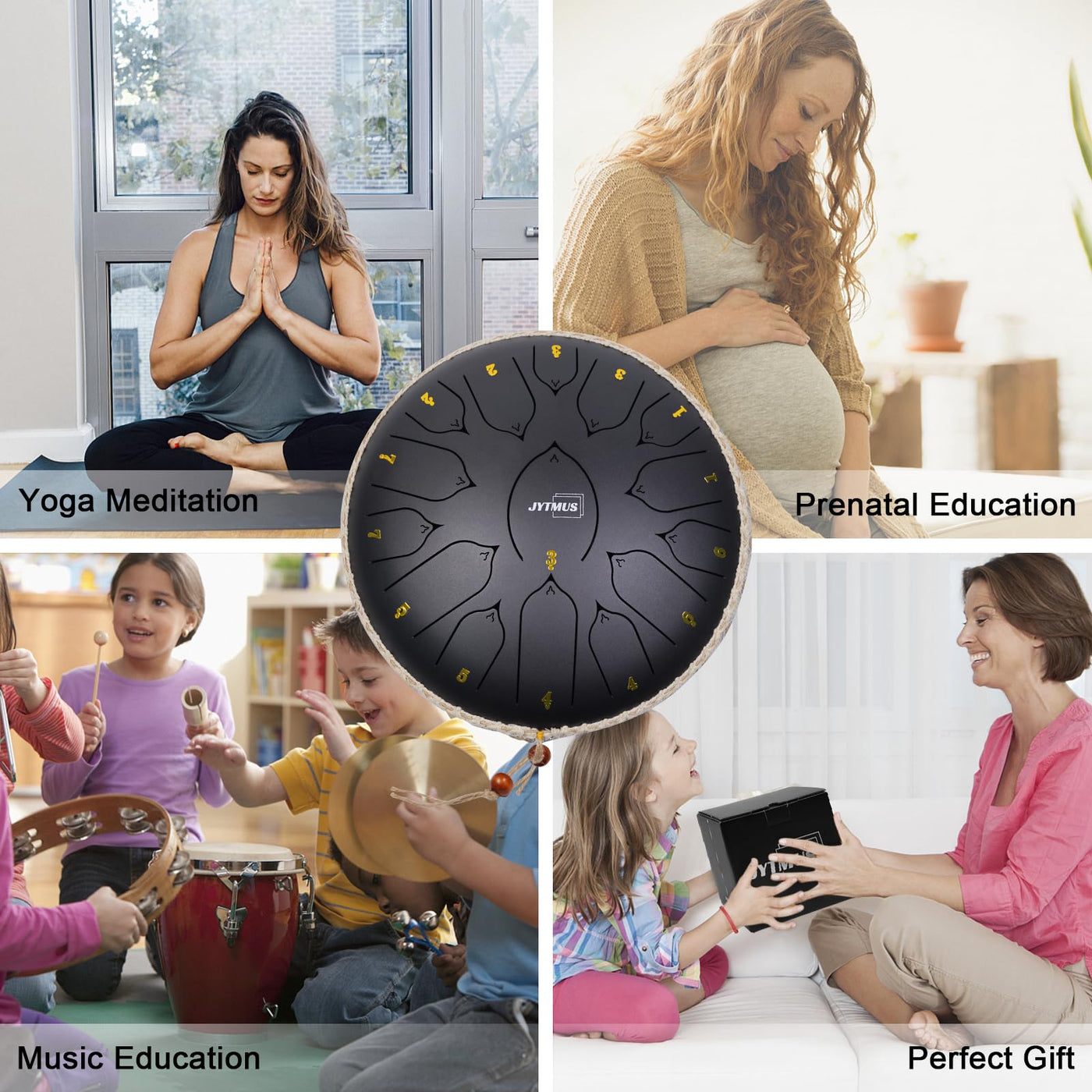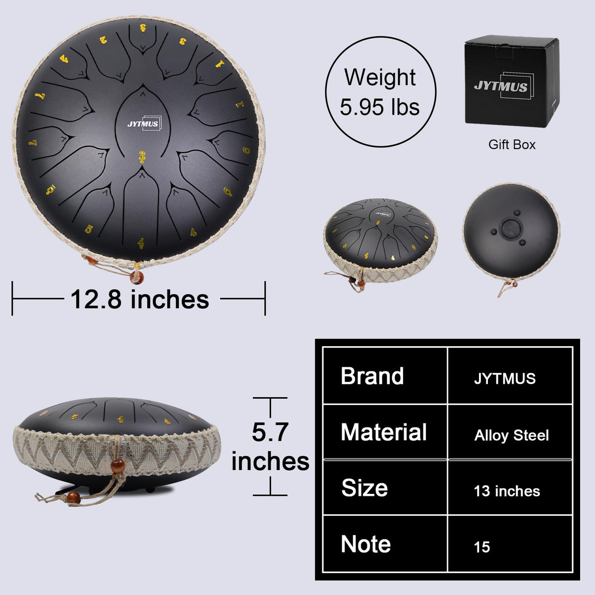 Jytmus Steel Tongue Drum 15 Notes 13 Inches Steel Drum With Drum Bag, Music Book, Drum Mallets, Mallet Holder, Finger Picks And