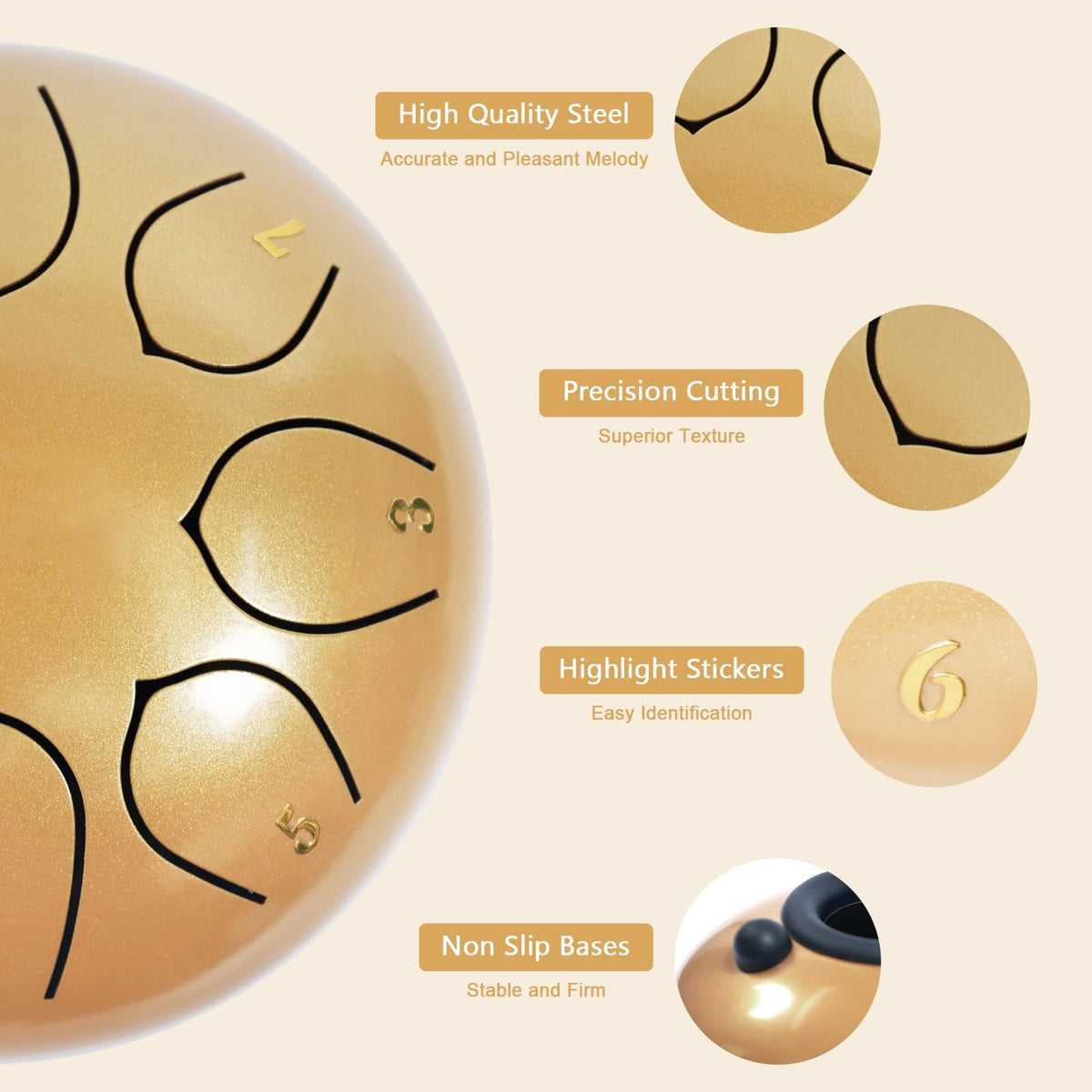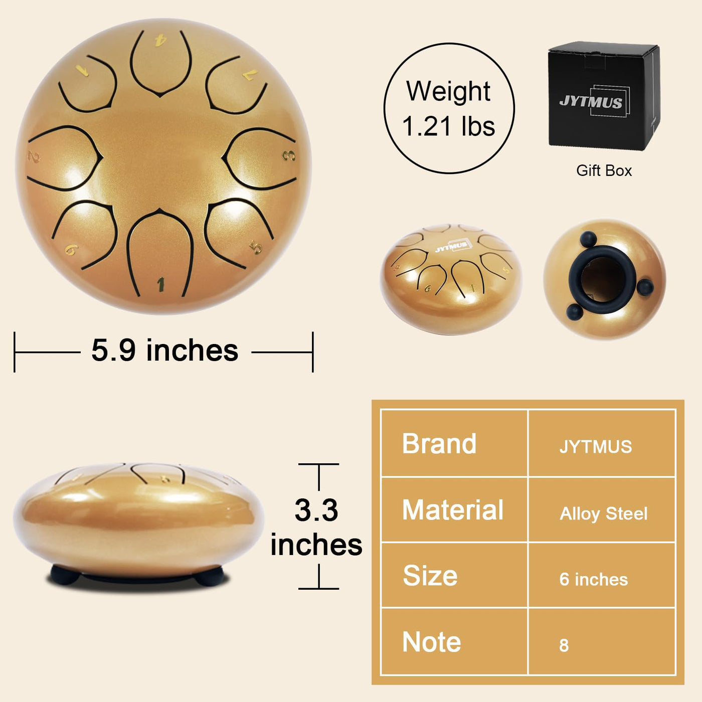 Jytmus Steel Tongue Drum 8 Notes 6 Inches, C Major Percussion Instruments, Steel Drum Kit With Music Book, Carry Bag, Drum Malle