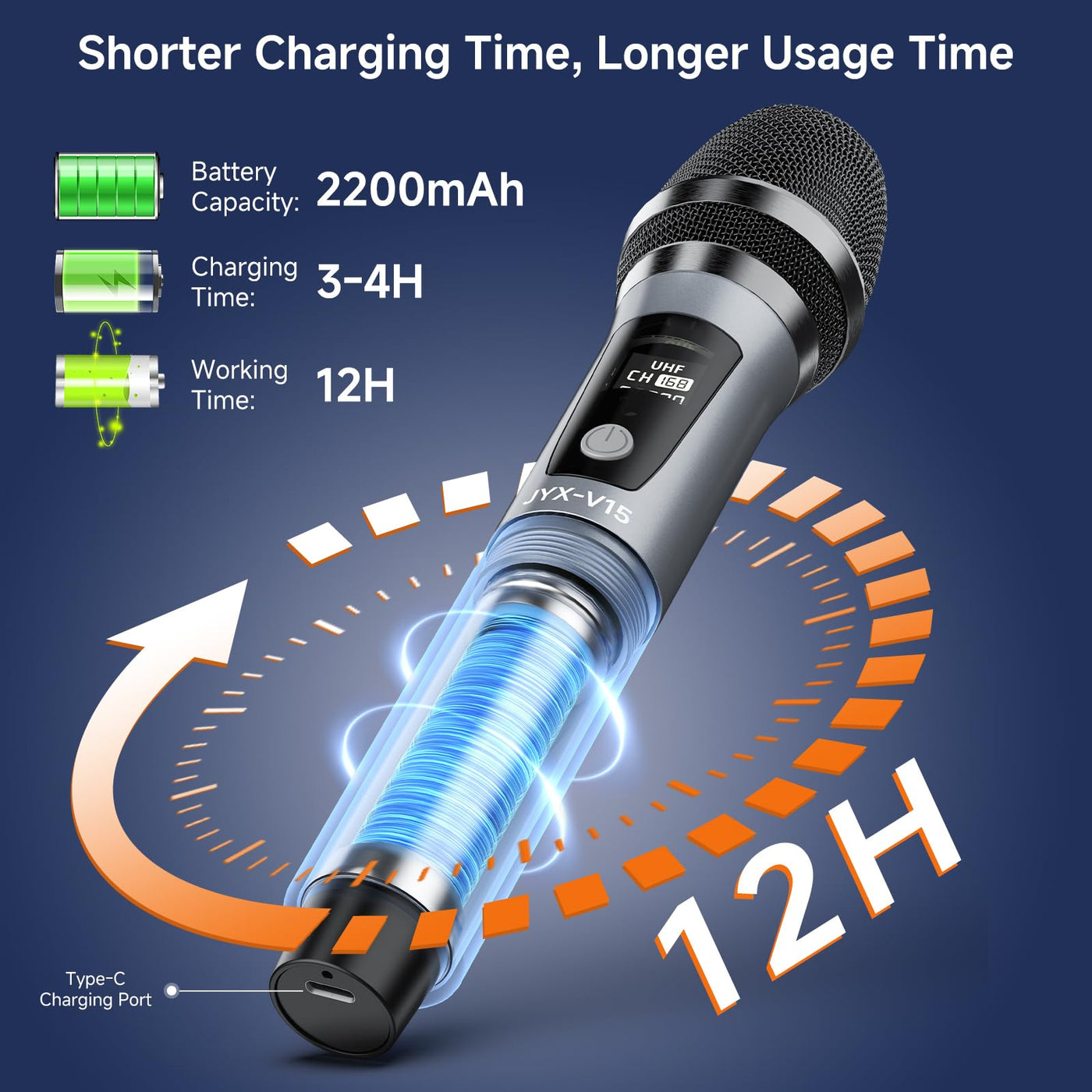 Jyx Wireless Microphone, Professional Uhf Metal Handheld Dynamic Mic System With Rechargeable Receiver 1/4''(6.35Mm) Plug, For A
