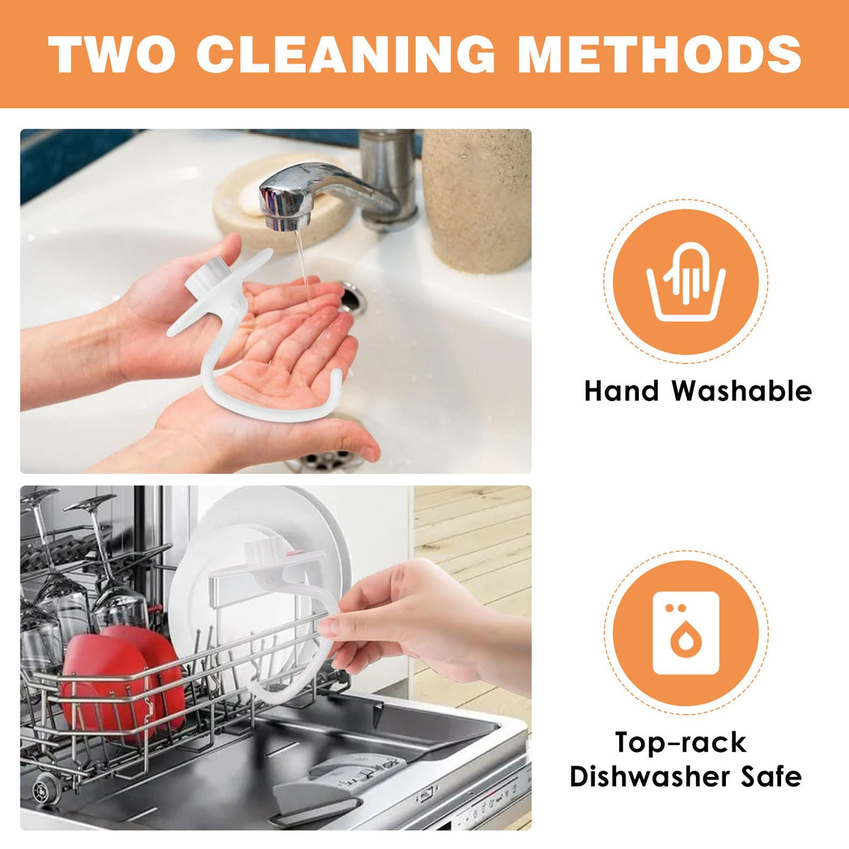 Q: How do I clean the K45DH dough hook?A: For best results, hand washing is recommended to preserve the nylon coating. However, the K45DH dough hook is also dishwasher safe if you prefer.