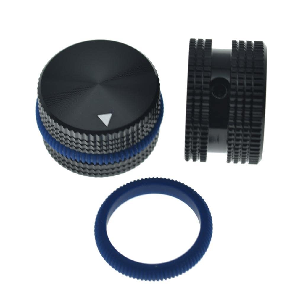 Kaish 2Pcs 63/64 (25Mm)Diam. Aluminium Potentiometer Knobs 1/4 Universal Pot Knobs With Rubber O-Ring And Indicator For Guitar/Bass/Amp Amplifier Black With Blue Ring