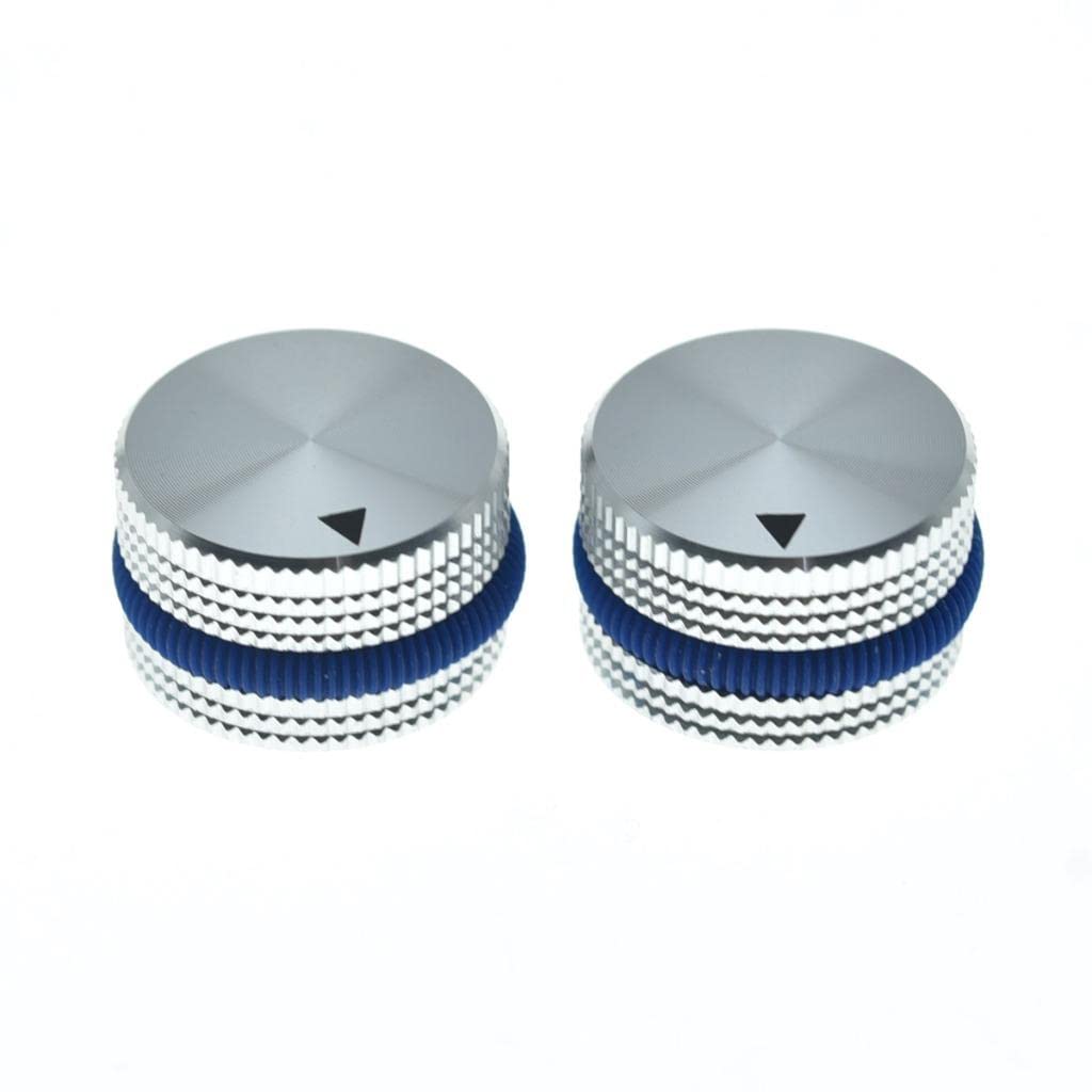 Kaish 2Pcs 63/64 (25Mm)Diam. Aluminium Potentiometer Knobs 1/4 Universal Pot Knobs With Rubber O-Ring And Indicator For Guitar/Bass/Amp Amplifier Silver With Blue Ring