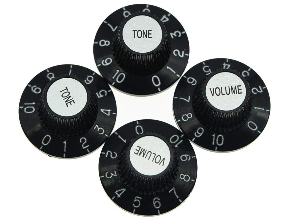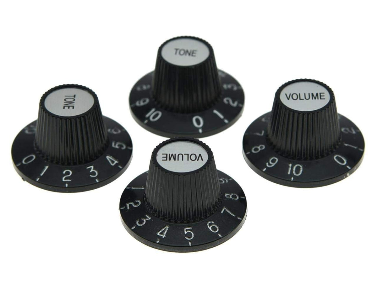 Kaish 4X Black With Silver Cap Lp Guitar Witch Hat Knobs Top Hat Knob For Epi Les Paul Sg