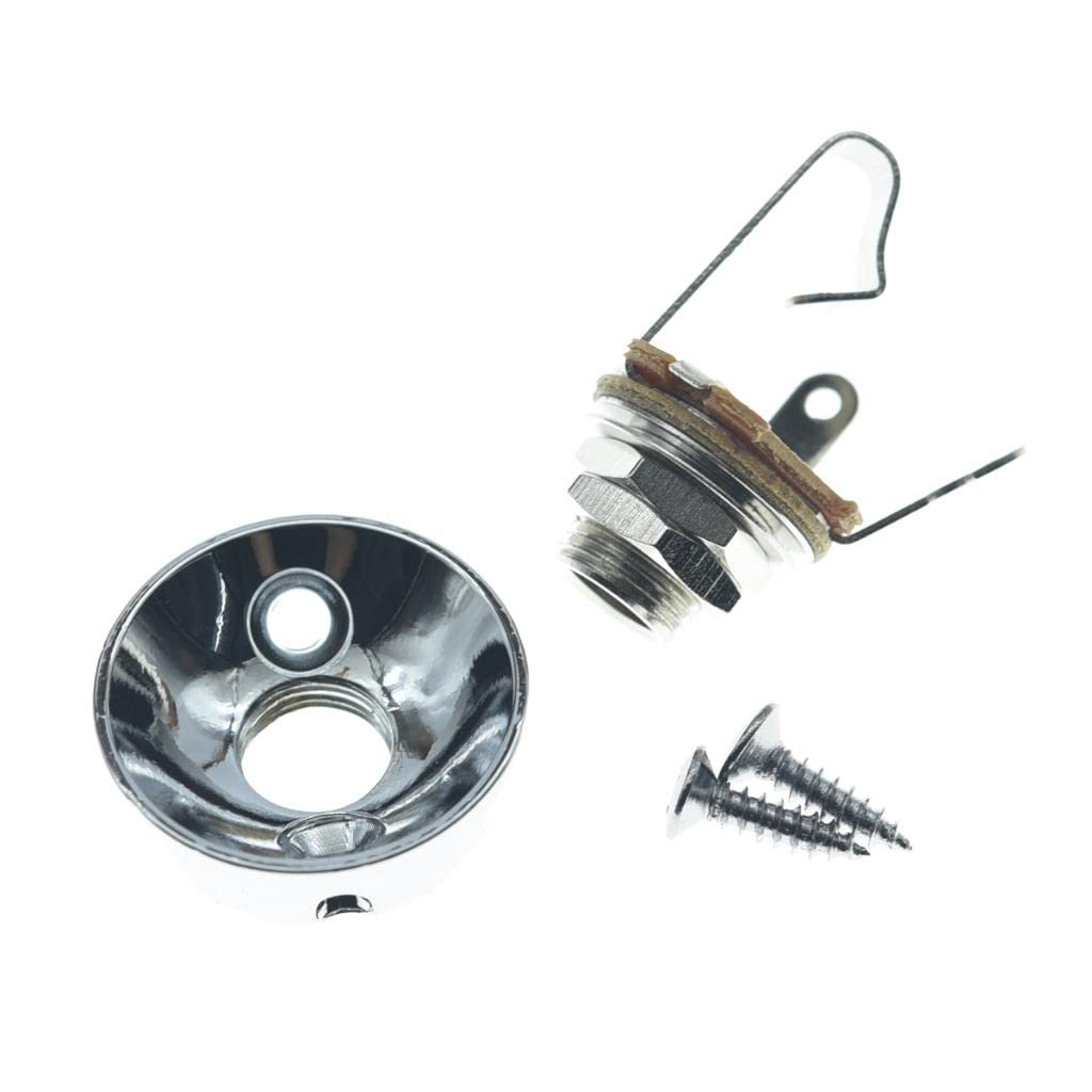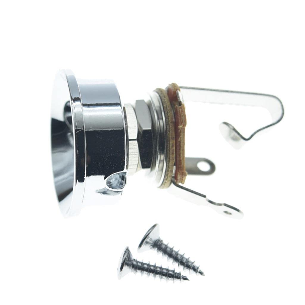 Kaish Chrome Brass Metric Electric Guitar Jackplate Electrosocket Jack Plate With Brass Output Mono Jack And Screws For Fender T
