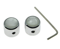 Kaish Set Of 2 Chrome With White Pearl Cap Guitar Knobs Pearl Top Dome Knobs Bass Knob With Set Screw For Tele/Telecaster