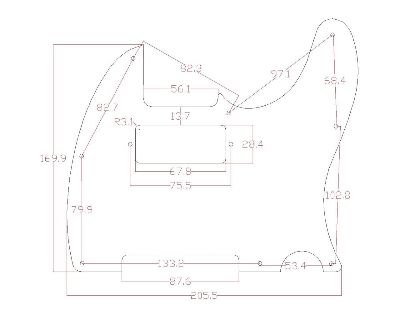 Kaish Tele Style Pickguard Guitar Pick Guard Scratch Plate With Mini Humbucker Pickup Hole For Tele/Telecaster Black 3 Ply