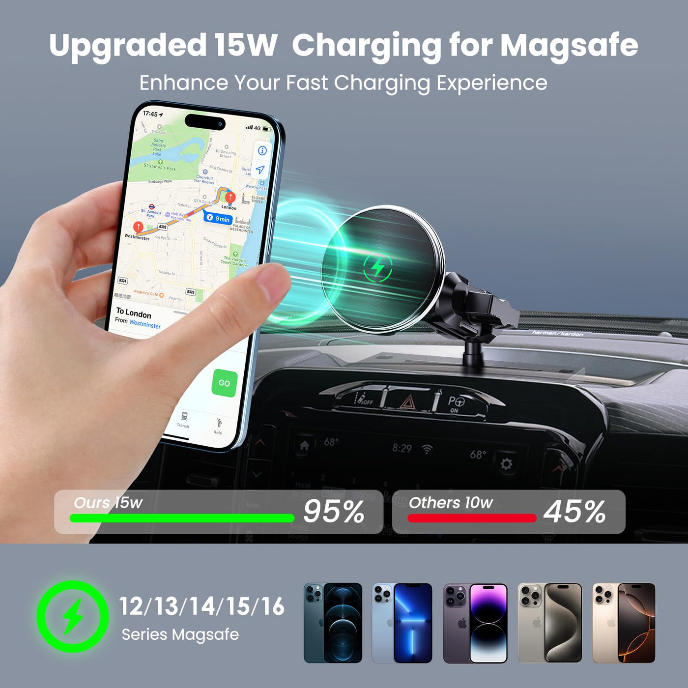 Kaishengyuan Dash Mount Magnetic Charging Holder With 8Cm Double Socket Arm + Extension Rotating Mounting Arm Compatible With Iphone And Android Smartphones - Fits 25Mm (0.98 Inches) Attachment Ball