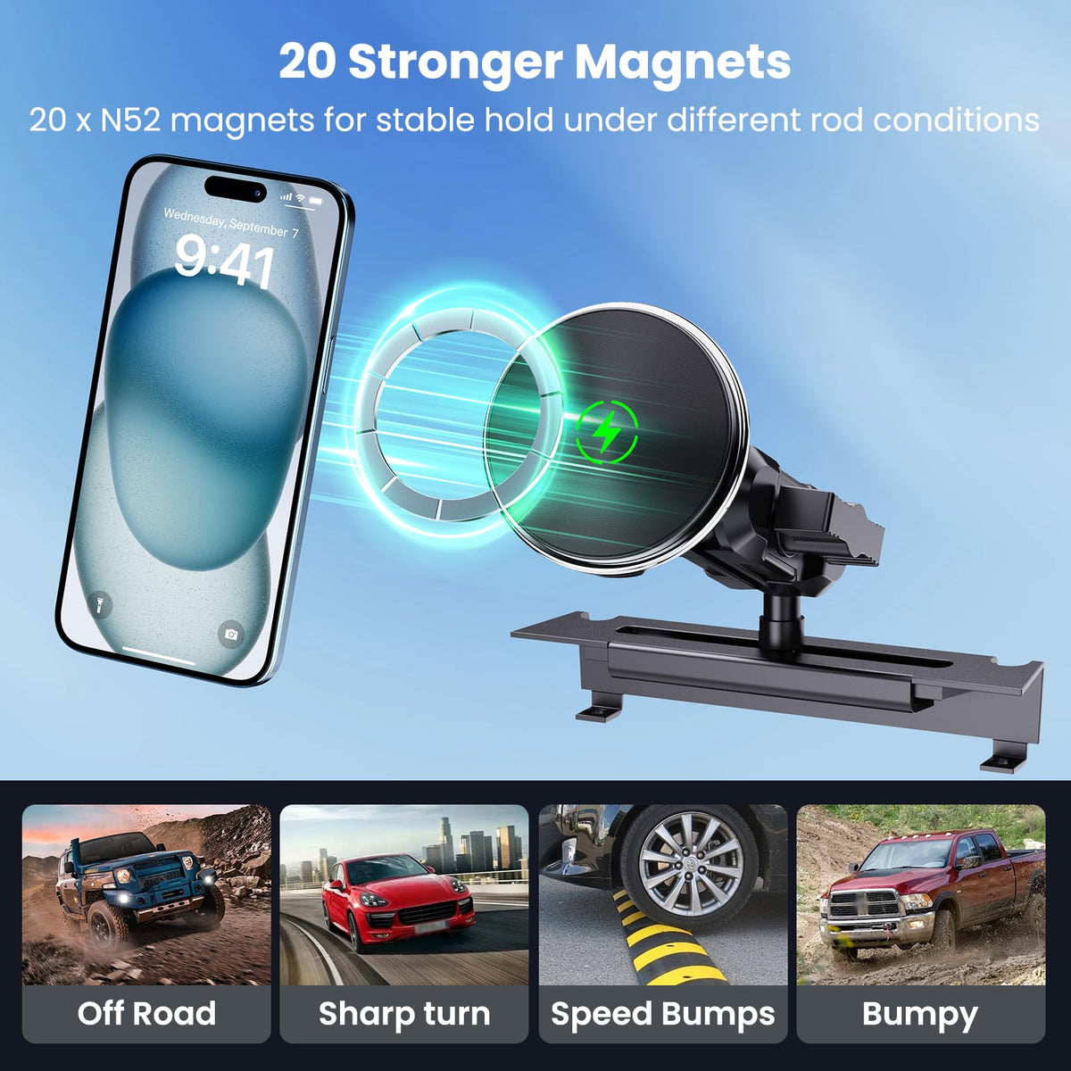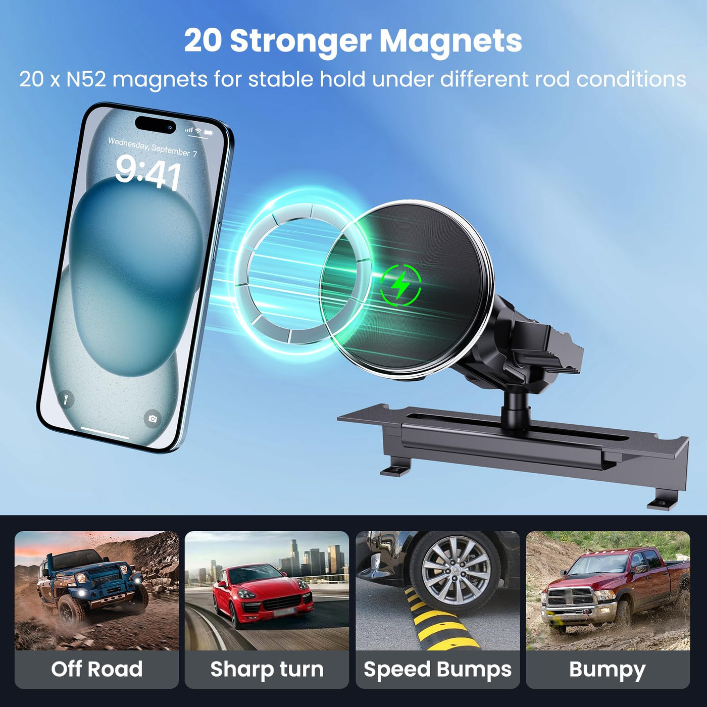 Kaishengyuan Magnetic Phone Mount With Wireless Charging For Ram Truck 2013-2018, Dash Mount Cell Phone Holder Compatible With R