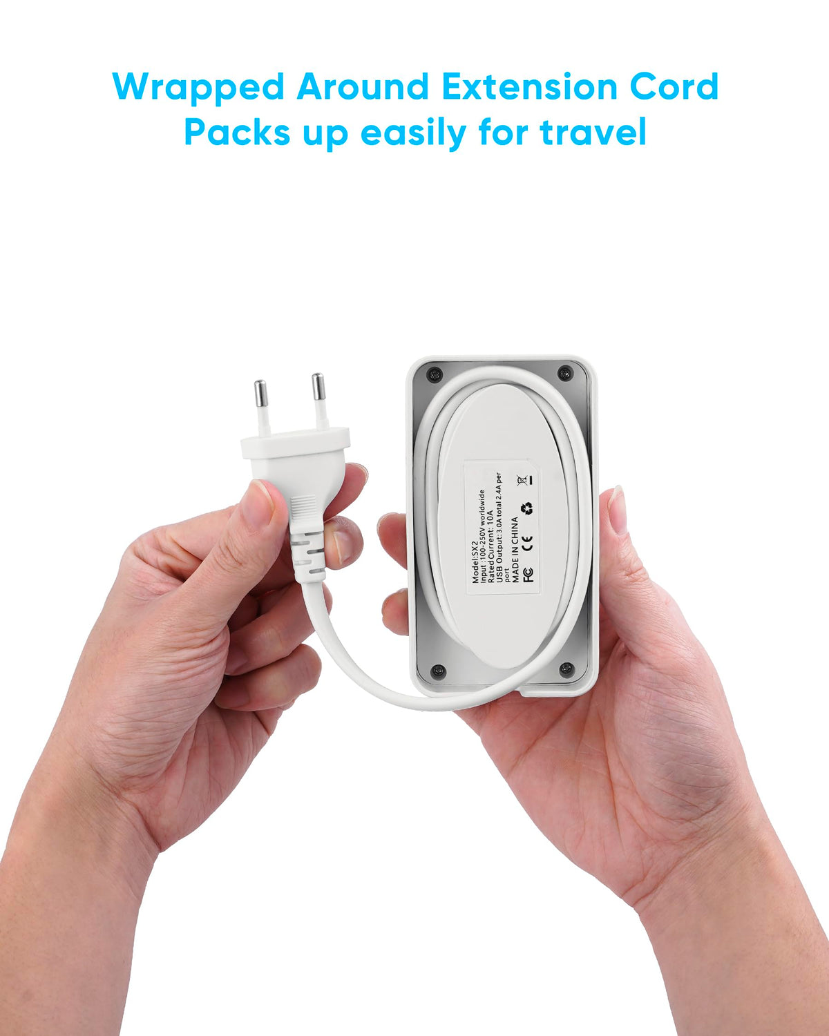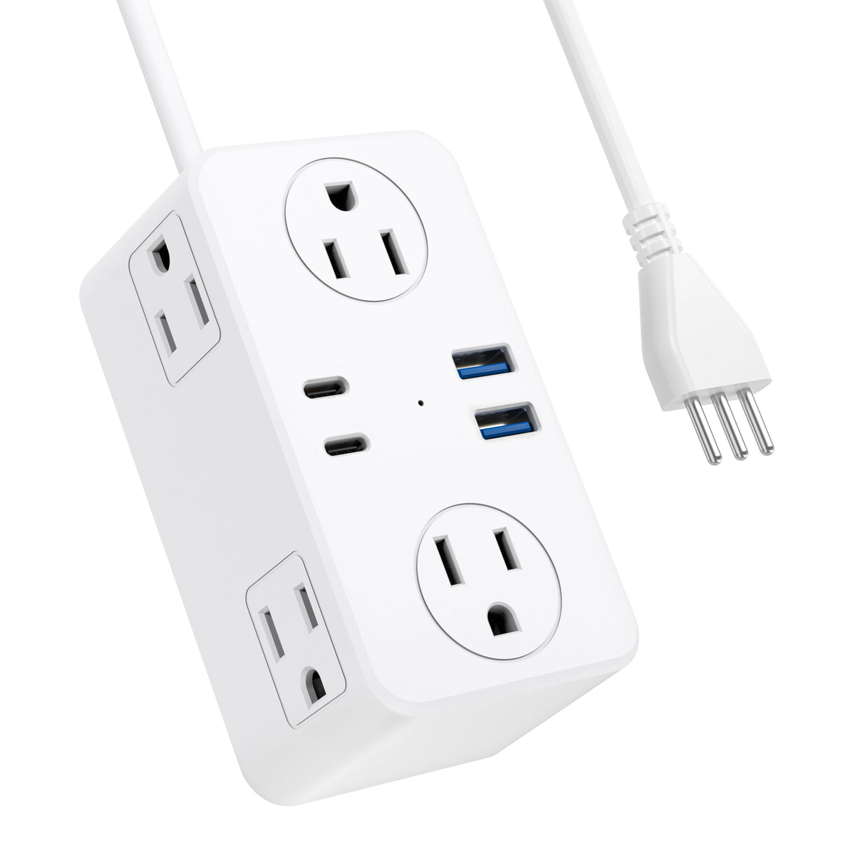 10-In-1 European Travel Plug Adapter, 6 Ac Outlets, 2 Usb A Ports And 2 Usb C Ports, Power Up To 10 Appliances And Mobile Devices At The Same Time | Type L Plug Compatible With Most European Countries Such As Chile, Ethiopia, Italy, Libya, Syria, Tunisia | 3Ft Extension Cord Can Be Cleverly Wrapped Around The Bottom Of The Power Strip. Easy To Store, Compact Size (4.36*2.41*1.93 Inches), Lightweight, Portable To Carry, Suitable For A Business Trip And Travel | Dual Usb A Ports For Charging Up To 2.4A, And Usb C Ports For Charging Up To 3A; 4 Usb Ports, Gives You More Charging Options And Is Ideal For Mobile Phones, Tablets, Headphones And More | Important Note: This Is Adapter Not A Voltage Converter, Make Sure Your Device Supports Dual Voltage (110V/220V), Especially Some High-Power Electrical Appliances