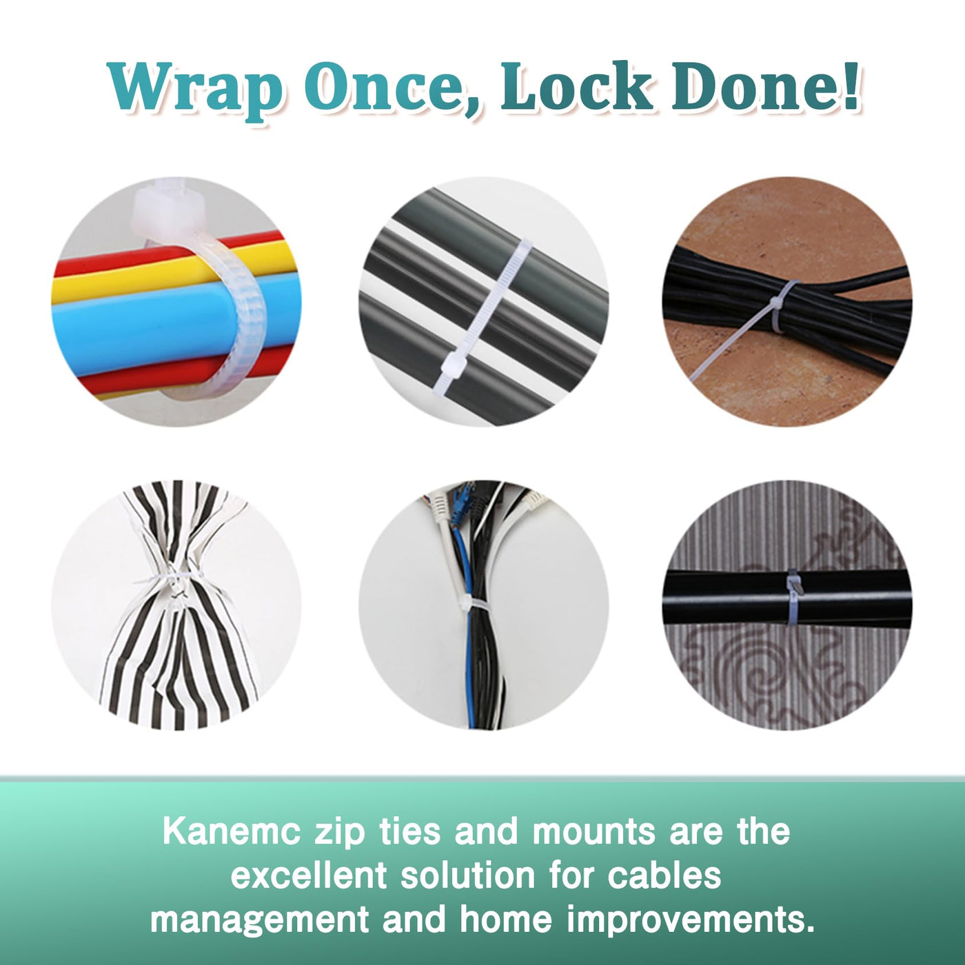 Q: What are Kanemc cable ties and mounts used for?A: Kanemc cable ties and mounts are designed to help organize and secure cords and cables in various settings, including homes, offices, and workshops. They effectively eliminate cable clutter and tangle, making them ideal for managing electrical cords behind TVs, computers, and other equipment.