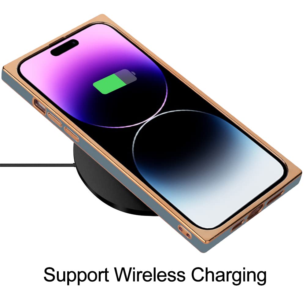 Only Compatible With Iphone 14 Pro Max 67 Inch Wireless Charging Compatible With The Case On Square Case For Iphone 14 Pro Max Luxury Plating Edge Bumper,It Show A Fashional And An Elegant Style Square Edge Adds More Grip And Makes Your Phone Stand Out From Others This Back Cover Has Easy Access To All Controls And Features With Accurate Cutouts For Buttons, Speakers, Camera And Other Ports, Easy To Use And Install Without Tools Needed Cover With Raised Lips On Front And Back Camera Lens Protector, Provide Full Body Drop Protection Without Bulk This Luxury Phone Case Camera Lens Has An Upgraded Design, Compared With Regular Cases, This Case Is Full Camera Lens Protection Which Enhance Lens Protection