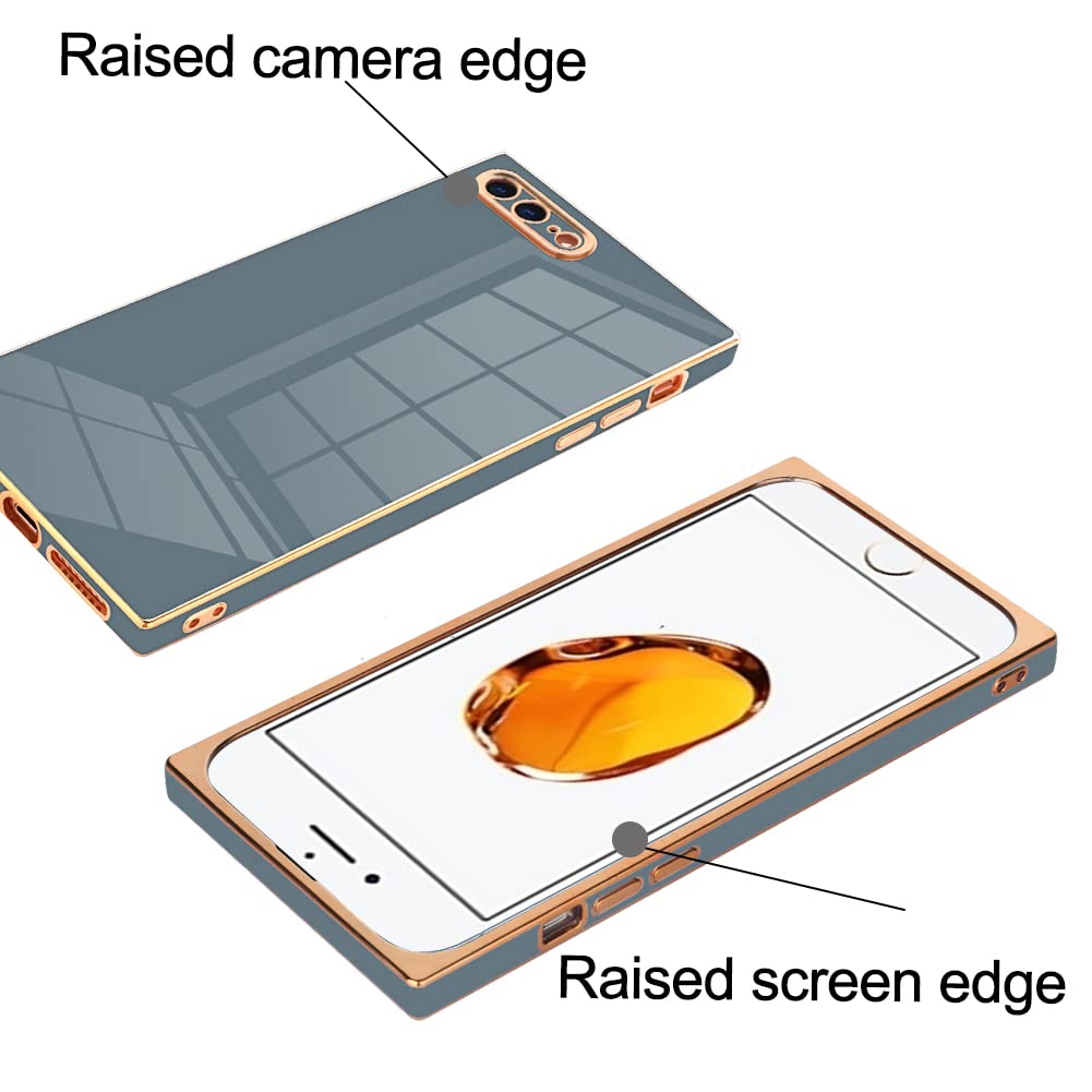 Kanghar Square Case Compatible With Iphone 7 Plus,Iphone 8 Plus Case Luxury Cute Plating Design Square Case Full Body Anti Scrat