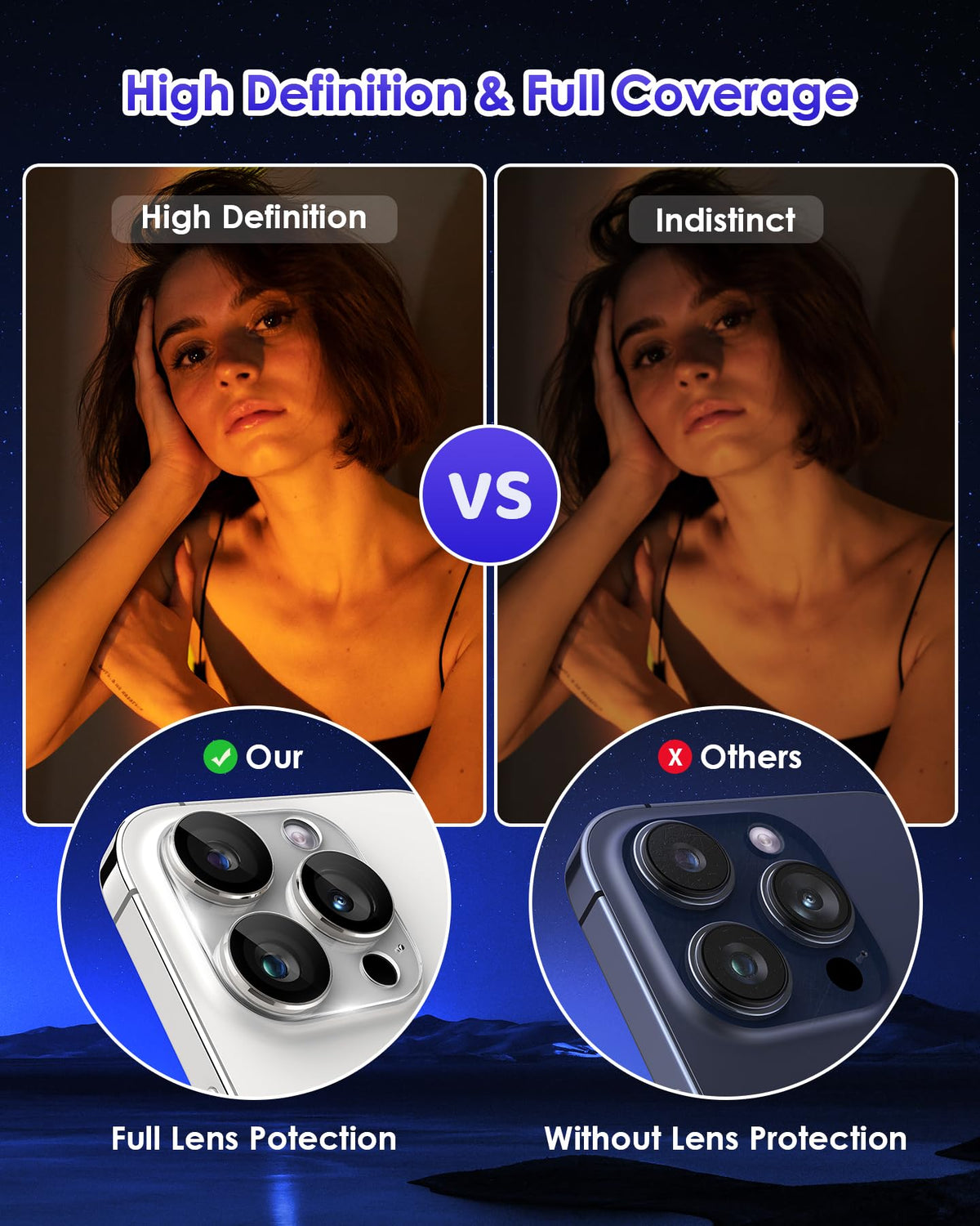 Q: How does the Kanosan Lens Protector ensure full protection for my iPhone’s camera?A: The Kanosan Lens Protector features precise laser cutting, ensuring a perfect fit that covers the entire camera lens. It protects against damage, scratches, water, dust, and shock.