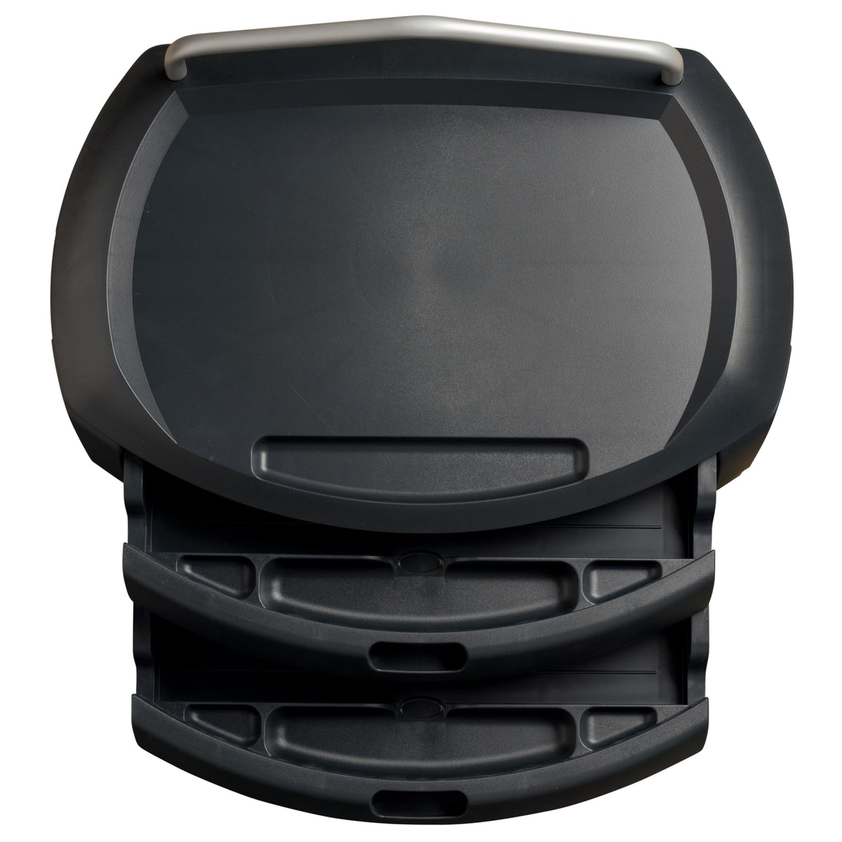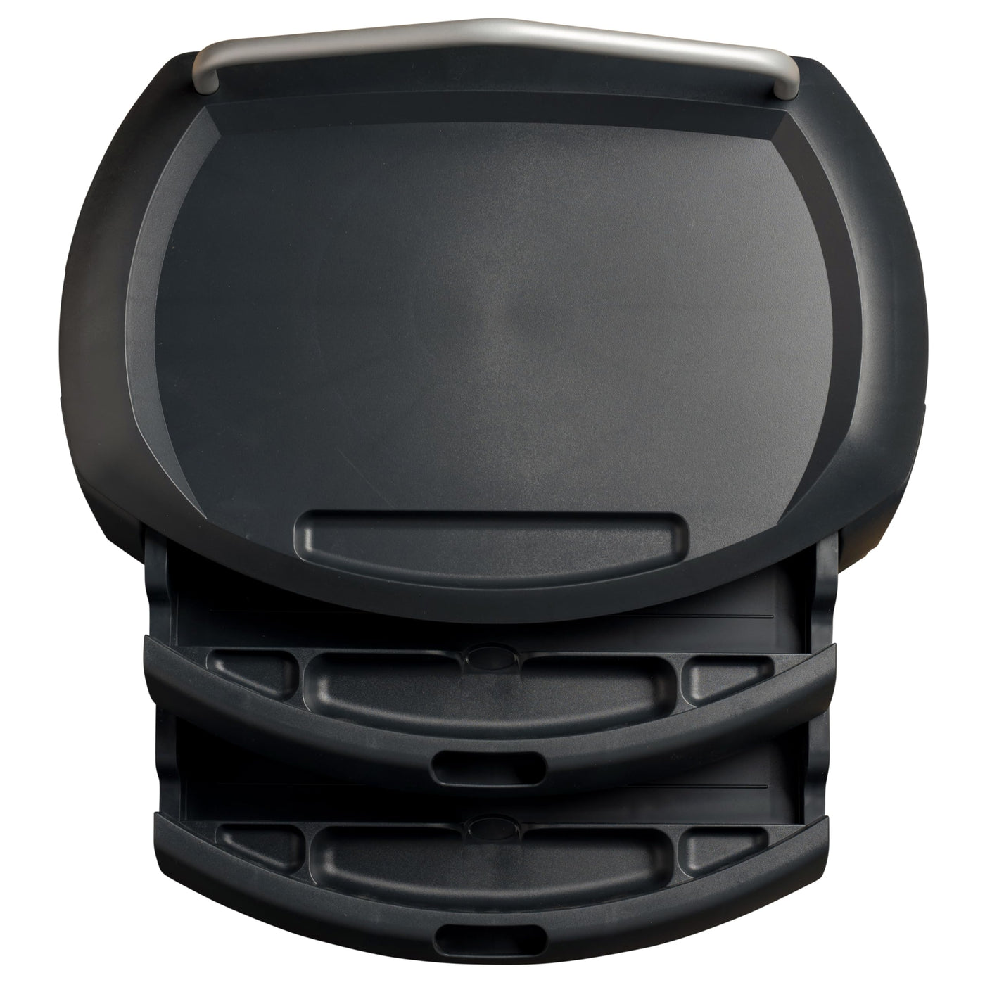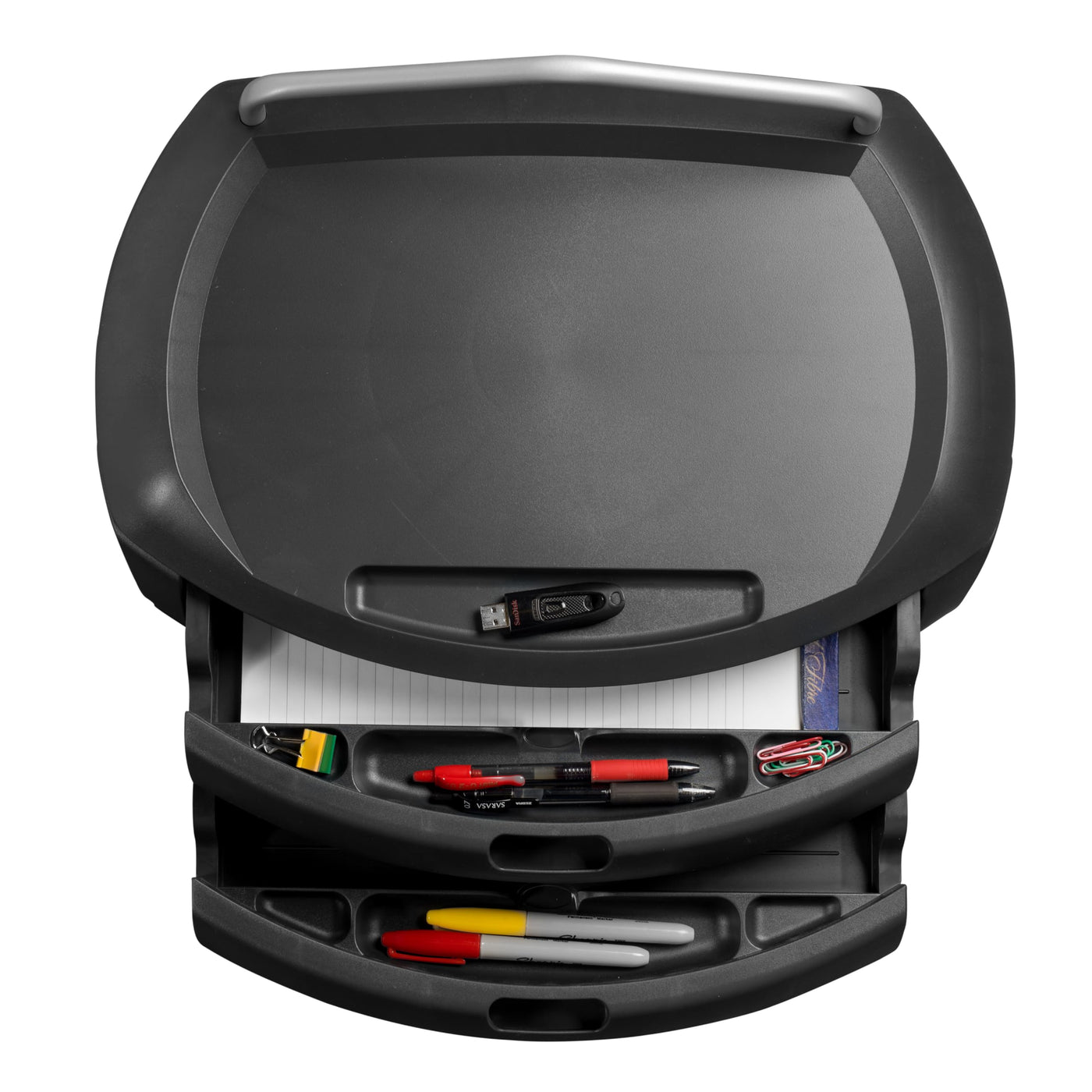 Designed to help reduce neck and eye strain by keeping your monitor at a comfortable angle. Constructed to support LCDs up to 35 lbs. Drawers provide ample storage space to keep office supplies organized and off your desk. Rubber feet prevent falling off of surface.