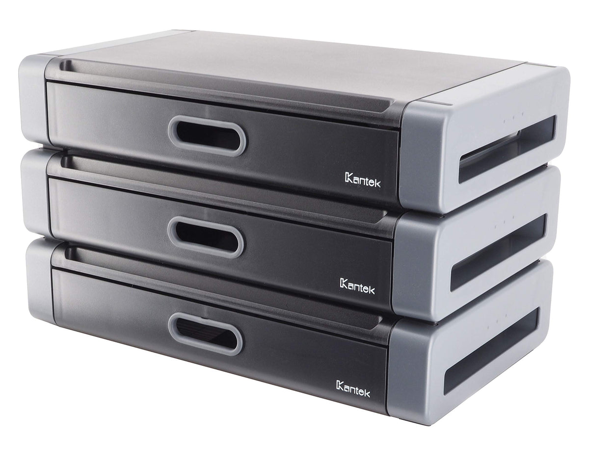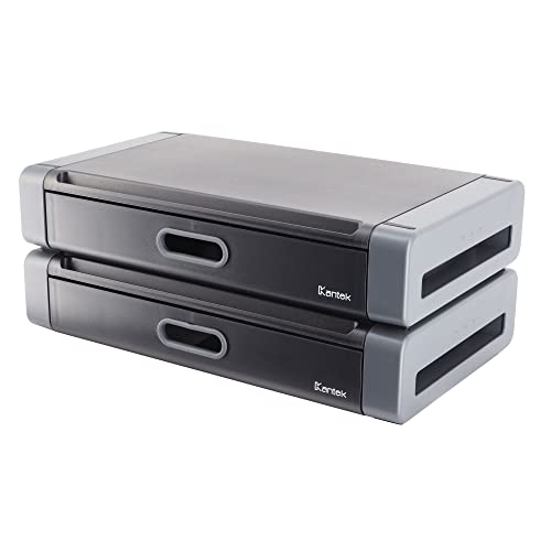 Create A More Efficient Work Space With The Kantek Monitor Riser With Drawer. This Stand Raises Your Monitor To A Comfortable Viewing Level, While The Front Slot Accommodates A Tablet Or Smartphone For Simultaneous Use. The Versatile Drawer Organizes Paper, Supplies, Files And More, And The Stylish Black/Gray Color Coordinates With Any Decor. Providing Innovation, Quality And Value Since 1982, Kantek Is A Leading Manufacturer Of Computer Accessories, Desk Accessories And Other Products.