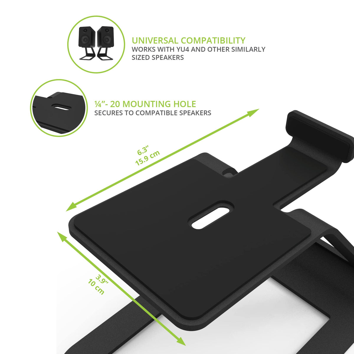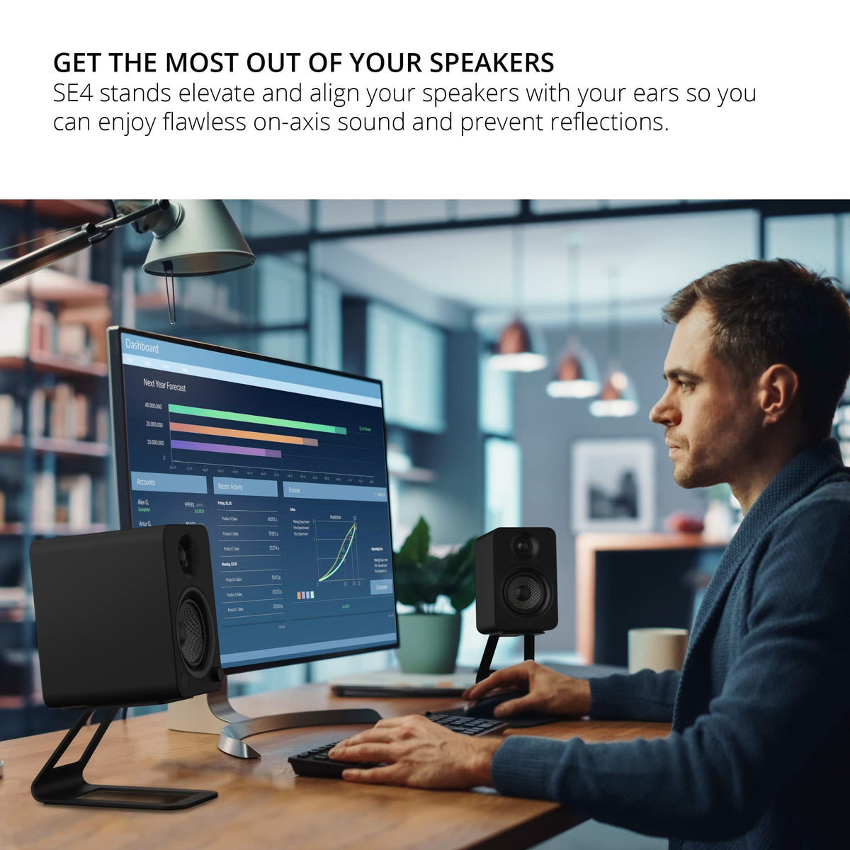 Reduced Resonance. Stellar Sound Quality. - The Se4'S Cantilevered Design And 2.0Mm Silicone Padding Absorbs Resonance From The Speaker Cabinet To Produce A Clean, Distortion-Free Sound. Use The Included Mounting Screws To Couple The Speaker And Stand Together To Increase The Mass Of Your Set-Up And Further Reduce Resonance. | Accurate, On-Axis Output - Elevate And Align Your Speakers With Your Ears So That You Can Enjoy Flawless On-Axis Sound And Prevent Reflection From Nearby Surfaces. | Safe And Secure - 2.0Mm Of Silicone Speaker Dampening Offer A High Grip To Keep Your Speakers And Stand Firmly In-Place. Mounting Screws Are Included To Help You Further Secure Compatible Speakers To The Stand. | Reclaim Your Workspace - Se4'S Clean, Clutter-Free Design Is Built So That You Can Place Extra Items Directly Below The Speakers, Maximizing The Utility Of Your Desk Surface And Using The Space Normally Taken Up By Traditional Speakers. | Minimalist Design - Who Says Functional Can'T Be Beautiful? The Se4 Stand Boasts A Minimal Design That Matches The Style And Color Of Other Kanto Accessories For A Clean, Consistent Look. Available In A Black Or White Finish.