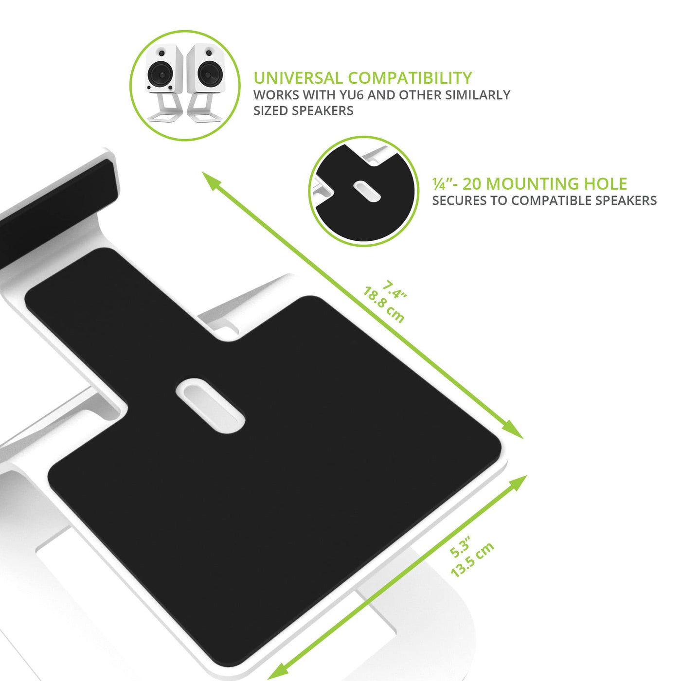 Reduced Resonance. Stellar Sound Quality - The Se6'S Cantilevered Design And 2.5Mm Silicone Padding Absorbs Resonance From The Speaker Cabinet To Produce A Clean, Distortion-Free Sound. Use The Included Mounting Screws To Couple The Speaker And Stand Together To Increase The Mass Of Your Set-Up And Further Reduce Resonance. | Accurate, On-Axis Output - Elevate And Align Your Speakers With Your Ears So That You Can Enjoy Flawless On-Axis Sound And Prevent Reflection From Nearby Surfaces. | Safe And Secure - 2.5Mm Of Silicone Speaker Dampening Offer A High Grip To Keep Your Speakers And Stand Firmly In-Place. Mounting Screws Are Included To Help You Further Secure Compatible Speakers To The Stand. | Reclaim Your Workspace - Se6'S Clean, Clutter-Free Design Is Built So That You Can Place Extra Items Directly Below The Speakers, Maximizing The Utility Of Your Desk Surface And Using The Space Normally Taken Up By Traditional Speakers. | Minimalist Design - Who Says Functional Can'T Be Beautiful? The Se6 Stand Boasts A Minimal Design That Matches The Style And Colour Of Other Kanto Accessories For A Clean, Consistent Look. Available In A Black Or White Finish.