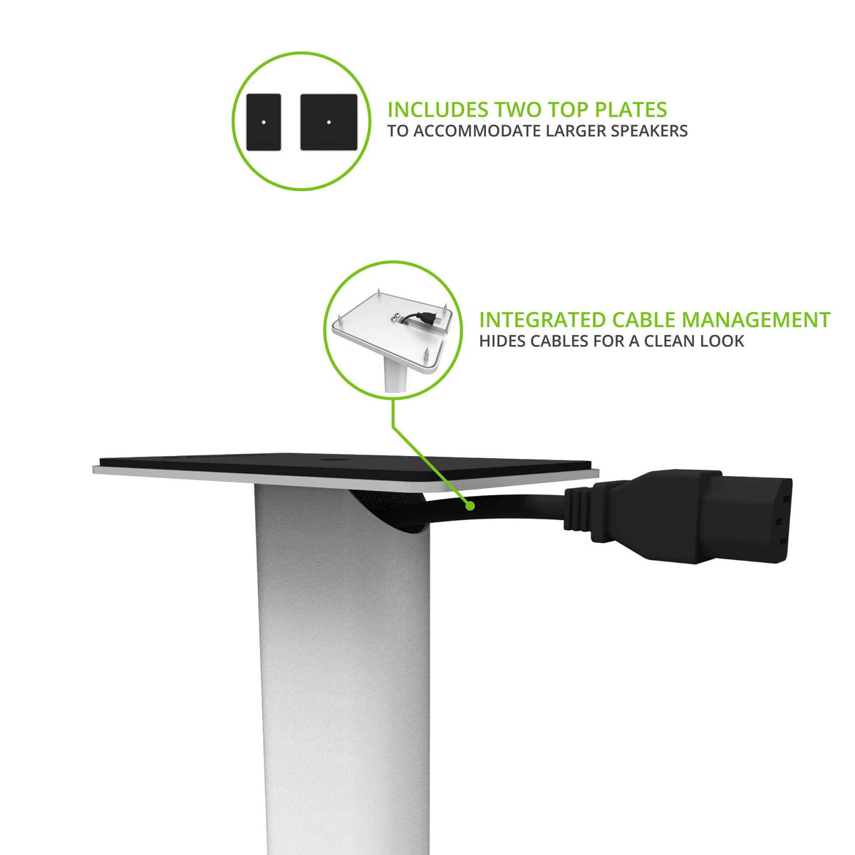 Get The Most Out Of Your Speakers With The Sp Series. Available In 26 And 32-Inch Models, These Low-Profile Speaker Stands Feature A Rotating Top Plate To Ensure Every Sound Reaches Your Ears. Each Stand Is Built With Heavy-Duty Steel To Reduce Undesirable Vibration And Features A Hollow Core To Conceal Cables And Speaker Wire. For Maximum Stability, Two Top Plate Sizes Are Provided, Each With A Mounting Hole And - 20 Screw To Secure Your Yu4, Yu6 Or Other Compatible Speakers In Place. Interchangeable Spiked And Domed Feet Are Also Included For Carpet And Hardwood Flooring. Available With A Black Or White Powder Coated Finish.