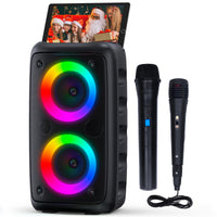 Karaoke Machine For Adults And Kids,Portable Bluetooth Speaker With 1 Wireless Microphone And 1 Wired Mic,Rechargeable Powered D