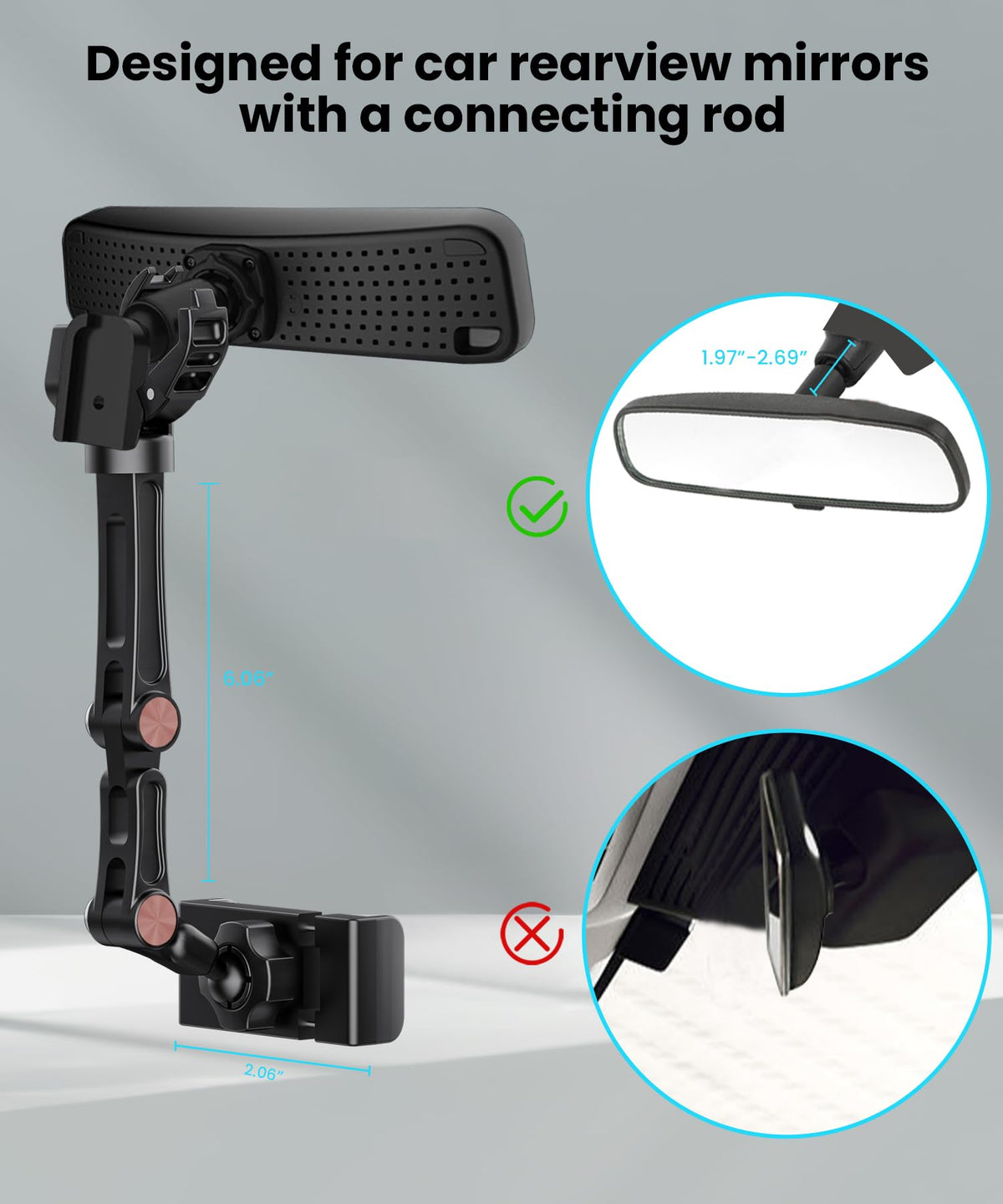 Karmus Rear View Mirror Phone Holder, Rearview Mirror Phone Holder For Car, Rotatable And Retractable Car Phone Holder Mount, Ca