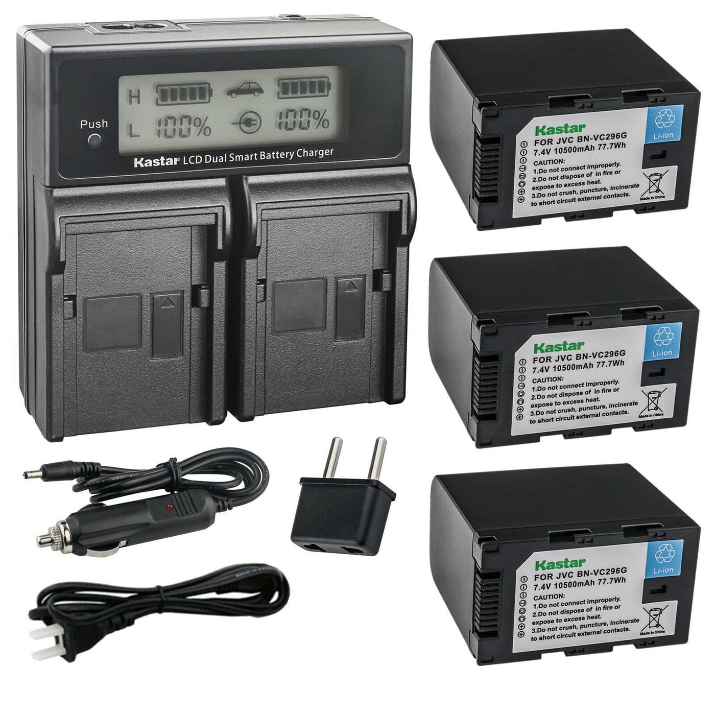 Kastar 3-Pack Battery And Ac Lcd Dual Fast Charger Compatible With Jvc Bn-Vc264G Bn-Vc296G Battery, Jvc Aa-Vc20 Aa-Vc20E Aa-Vc20
