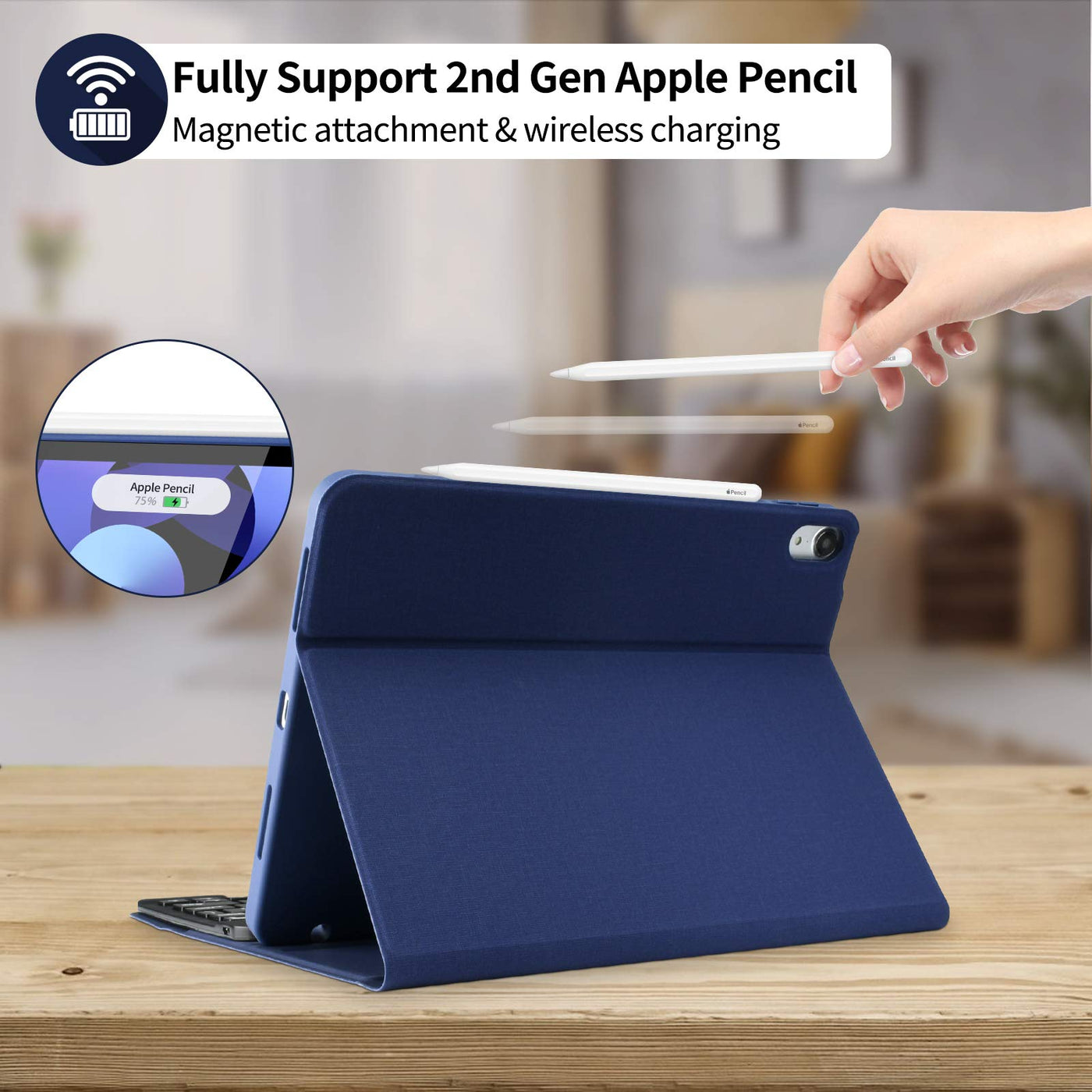 Keyboard Case For Ipad Air 11 Inch/For Ipad Air 5 2022/For Ipad Air 4 2020/For Ipad Pro 11 2018, Detachable Wireless Bluetooth Keyboard Case With Pencil Holder Magnetically Detachable Wireless Bluetooth Keyboard Keyboard Case For Ipad Air 5Th/4Th Comes With Detachable Bluetooth Keyboard That Seamlessly Connects With Ipad. Keyboard For Ipad Air5 Gen Can Be Quicker And More Comfortable To Typing. A Spring Mechanism Underneath Each Key Ensures A Tactile Response With Every Stroke, Helping You To Type Faster And With Less Error Than On Touchscreen. Universal Compatibility Keyboard Wireless Bluetooth Keyboard Can Be Connected To Ios,Android And Windows Systems. Press Fn + Ios/Android/Windows To Change The Operating System. All-Around Protection Case Precise Cut-Outs And High-Quality Smart Keyboard Case With Full Access To All Of The Ports And Features,Which Provides Full Protection To Keep Your Tablet Free From Scratches, Dust, Wear And Tear. Bluetooth Connection Steps 1.Right Slide The Power Switch To Turn On Keyboard, Press Connect Button. 2.Open And Unlock Your Electronic Device,Go To Setting . 3.Go To Bluetooth And Enable Bluetooth Of Your Device,It Will Automatically Search For Nearby Devices. 4.Find The Bluetooth Keyboard Device,Click Connect. Charging Descriptions *To Charge It, Connect It To Phone Charger,Power Bank, Wall Charger Or Computer Device With Micro Usb Cable. *First Time To Use It, Do As Possible To Charge It 6Th And Up, Later When Battery Level Is Low,Charge It 2H Each Time. *When The Power Led Flashes,It Indicates The Battery Level Is Low,Please Charge It In Time. *During Charging The Light Will Stay On,Until It Is Full Charged,It Goes Off. -Packing List: *1 X Case *1 X Wireless Bluetooth Keyboard *1 X Charging Cord *1 X Keyboard Protector *1 X User Manual