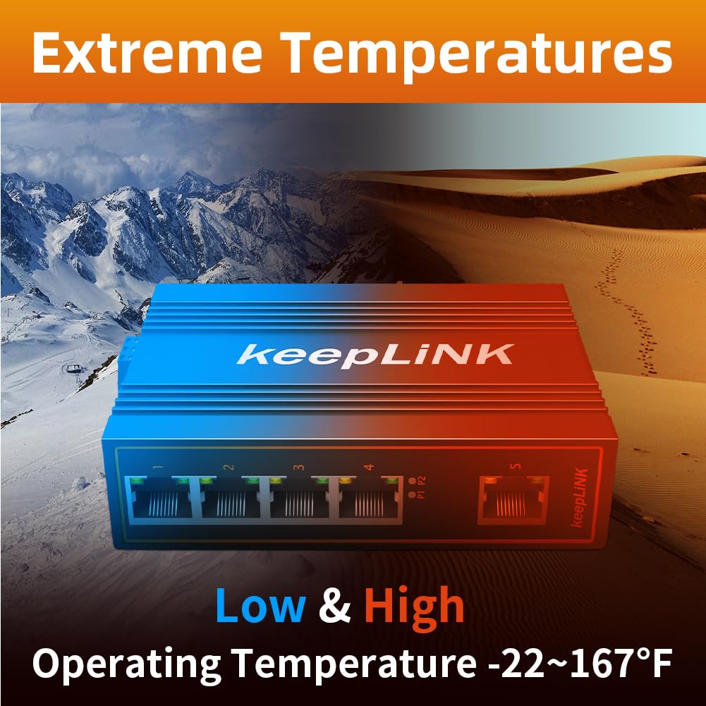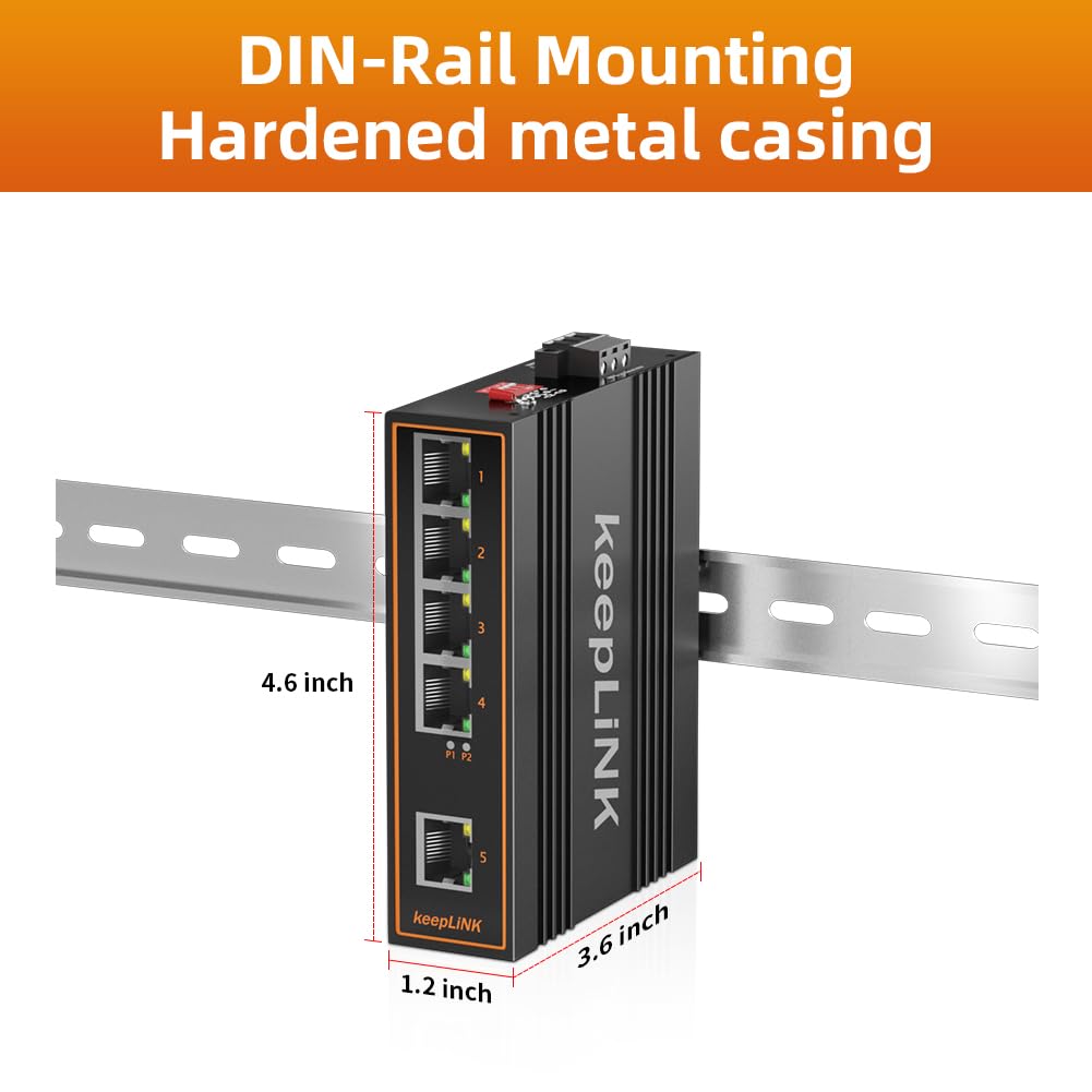 Keeplink 5 Port Industrial Poe+ Switch Unmanaged, 125W Fast Ethernet Din Rail Switch, Ip40 Operating Temperature Range Of -30 - 75C (-22 - 167F)