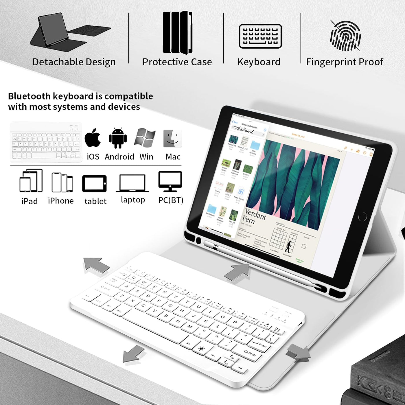 Kenke Has Been Committed To Providing Consumers With Fashionable And Durable Ipad Covers For Many Years. Every Kenke Ipad Case Has Been Tested Repeatedly And Every Environmentally Friendly Material Is Carefully Selected To Ensure Absolute Durability In Daily Use. This Is The Latest Design By Us - Ipad Case, It Will Exceed Your Expectation! Why Choose Kenke Ipad Case With Keyboard? Portable Keyboard Case With Keyboard - Built-In Abs Island-Style Keys For Comfortable, Fast And Efficient Typing Offering A Natural Feel Like A Standard Apple Keyboard. Selected Material- Premium Synthetic Pu Leather And Soft Microfiber Lining Can Offer Fully Protection To The Screen, Camera And Corner. Specially Designed For - Ipad 2018/2017/Air2/Air1 With Precise Cutouts For Easy Access To All Ports And Buttons. Anti-Slip Design - Thanks To The Anti-Slip Grooves And Anti-Slip Texture, This Ipad Smart Case Can Stand Individually Without The Keyboard. Easy To Install And Remove- Support Detachable Wireless Bluetooth Keyboard, With Built-In Apple Pencil Holder. How To Connect The Keyboard With Your Ipad? 1. Turn On Bluetooth Keyboard To ''On'' Button 2. Press The ''Connect'' Button On The Right Top Corner Of The Keyboard To Switch To The Bluetooth Function 3. Turn On Ipad'S Bluetooth, Search Bluetooth Device On Ipad 4. You Will Get 4 Digital Numbers On Ipad 5. Use The Keyboard To Enter 4 Digital Number And Then Press ''Enter'' 6. Step Finished, Keyboard And Ipad Matched Package Included: 1 X Folding Folio Case For Ipad&Nbsp;2018/2017/Air2/Air1 (Tablet &Amp; Pencil Or Other Accessories Not Included!) 1 X Wireless Bluetooth Keyboard 1 X Micro Usb Charging Cable(Only For The Keyboard) 1 X User Manual