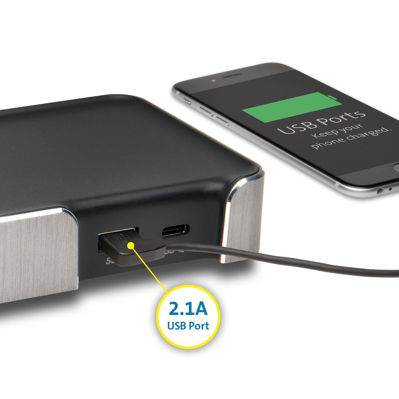 Q: Can I charge my phone while using this docking station?A: Yes, the Kensington SD5200T Docking Station provides additional power for charging phones and other peripherals.