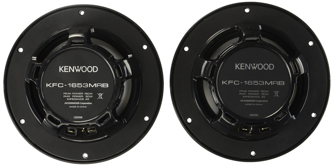 Q: What are the power specifications of the Kenwood KFC-1653MRB speakers?A: The Kenwood KFC-1653MRB marine speakers have a power range of 2-50 watts RMS, with a peak power capacity of 150 watts, making them suitable for a variety of audio setups.
