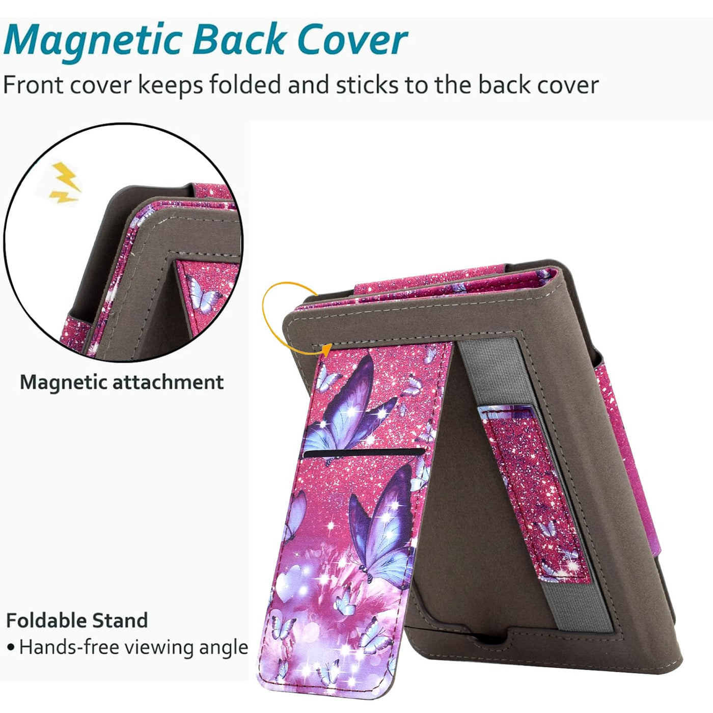 Q: Does the KEROM case have a stand for hands-free reading?A: Yes, the KEROM Kindle Paperwhite case includes a foldable stand, allowing you to position your device on a desk or table for hands-free reading, making it ideal for comfortable, prolonged use.