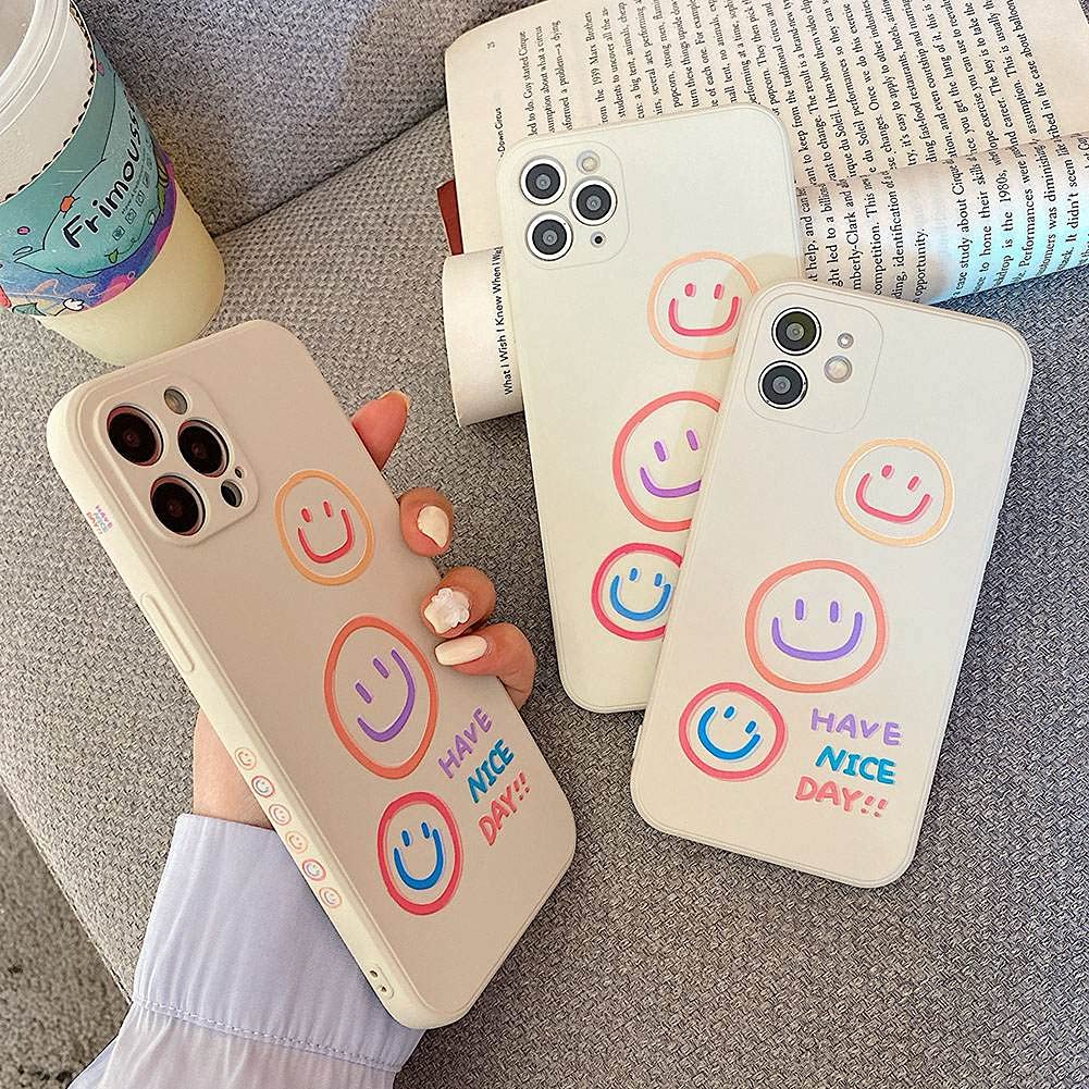 Kerzzil Cute Smile Pattern Compatible With Iphone 12 Case, Silicone Slim Fit Soft Anti-Scratch Microfiber Lining] Flexible Tpu Shockproof Protective Cover Cases Capa 61 Inch (Beige)