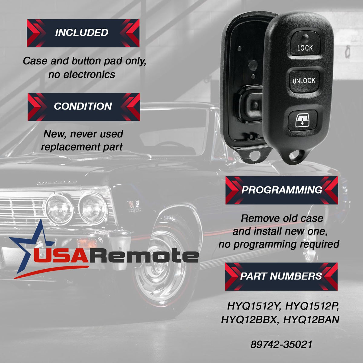 Replace Your Lost Or Broken Keyless Entry Key Fob Remote With A Usaremote Fob.Fits P/N: Hyq12Bbx, Hyq12Ban, Hyq1512Y, 1511A-12Bbx1999-2009 4Runner2001-2008 Sequoiathis Is A Replacement Aftermarket Part.