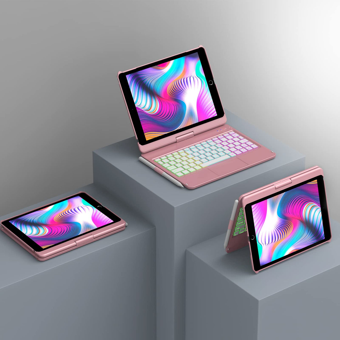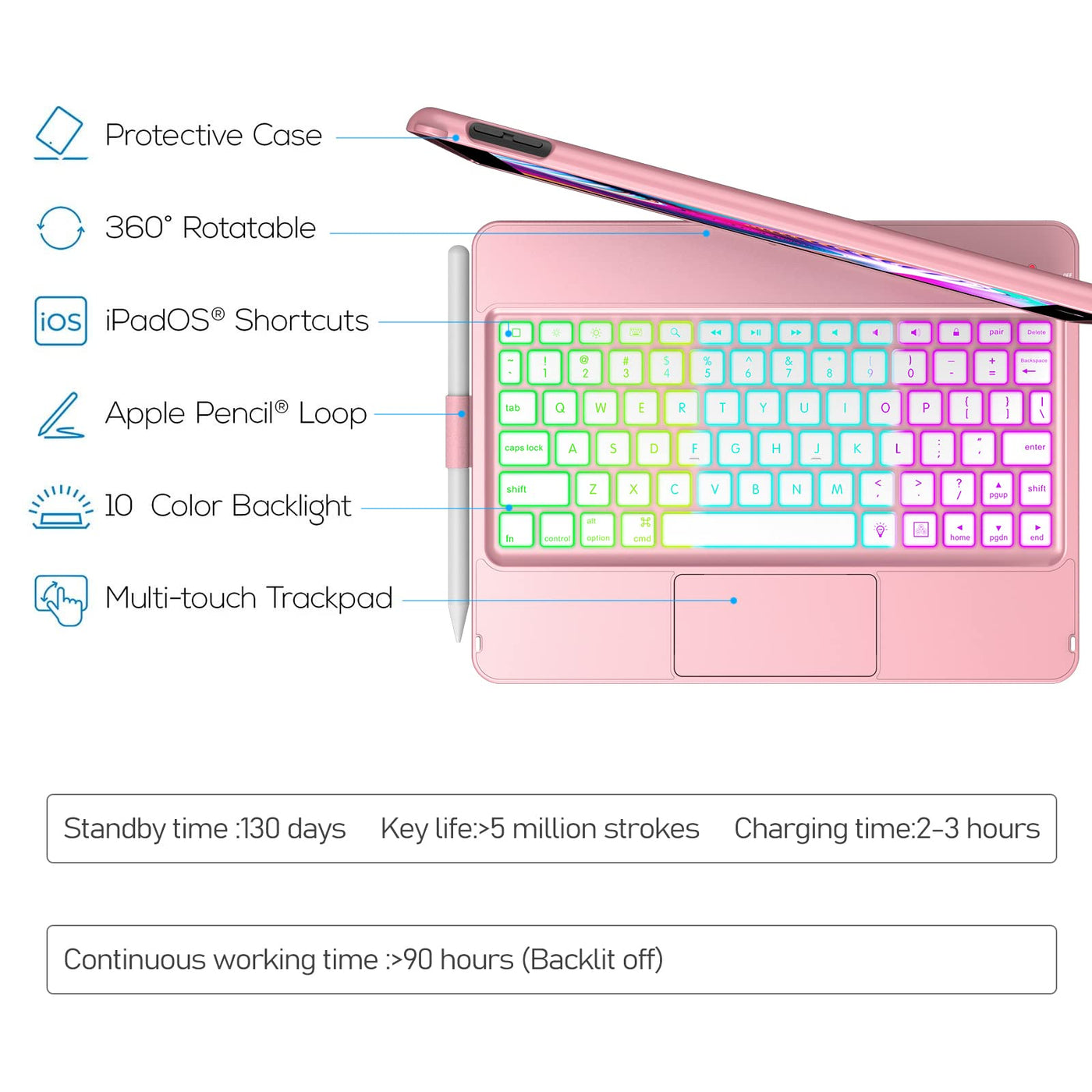 Products Advantage & Features ?360 Of Freedom-Transform Your Ipad Into The Ultimate Viewing Experience ? Portable Ipad Keyboard Case-It'S The Best Choice For Travel And Go Out ?Easy To Get Connected With Your Ipad With Bluetooth,Keys Are Easy And Responsive And Smooth Fine To Use ?Laptop-Like Typing:You Can Type Quickly And Accurately In Comfort With A Familiar Laptop-Like Keyboard ?Multi-Color Backlit Wireless Bluetooth Keyboard & 360 Degree Rotate & 180 Degree Flip &Support Automatic Sleep/Wake-Up With Stand Function ?Built-In Rechargeable Battery For Long Keyboard Life And Continuous Use.Don'T Worry About The Bluetooth Keyboard Cutting Out Mid-Sentence ?Responsive Keyboard And Lightweight Which Is Perfect For Class,Doing Note,Business Meetings Ect,So That Is Also A Perfect Gift For Your Child,Husband And So On,And It'S Your Best Choice No Need To Buy An Expensive Laptop Anymore
