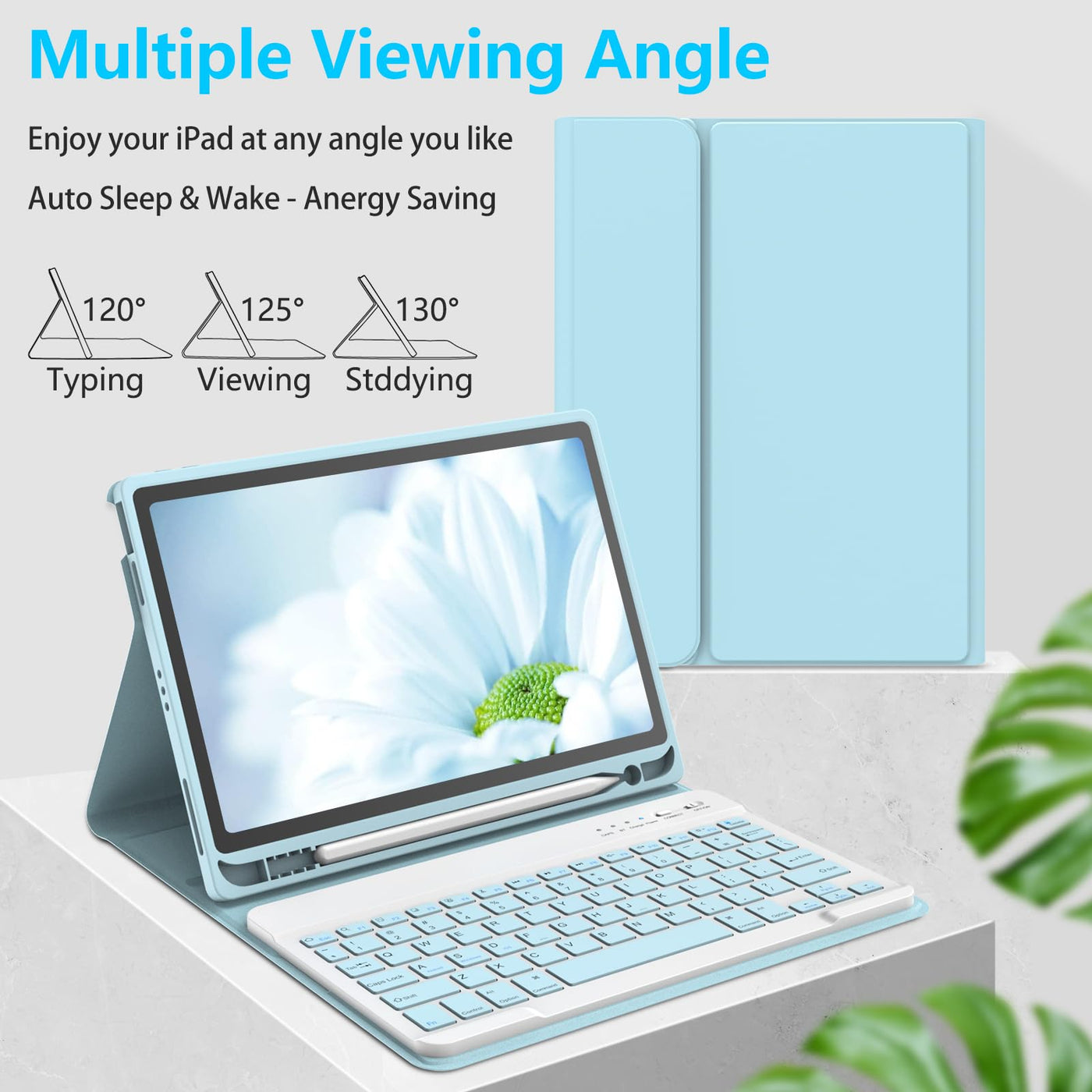 Keyboard Case For Ipad Air 11 Inch M2 2024/ Air 5Th/ 4Th Generation Detachable Bluetooth Keyboard Case With Pencil Holder Fli