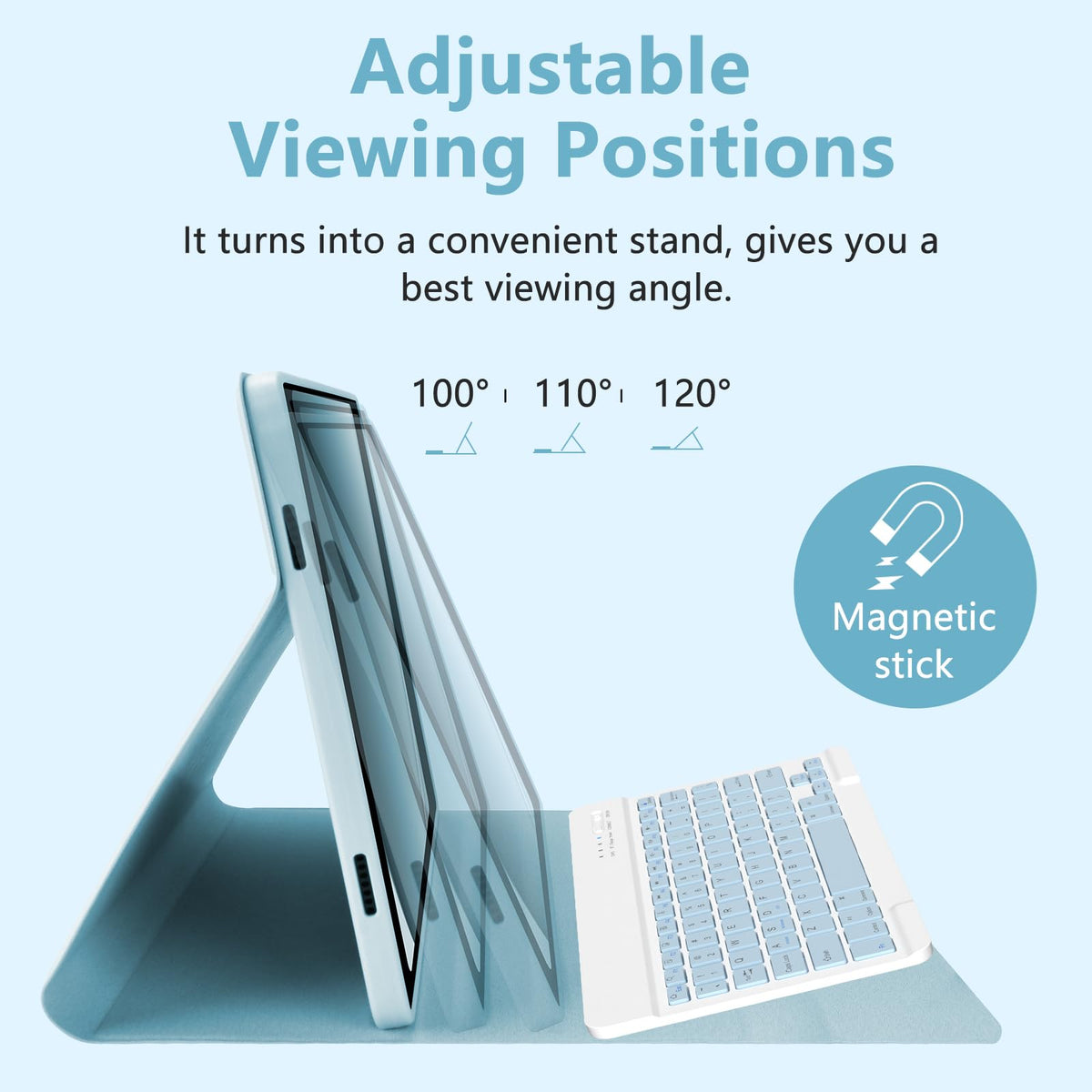 Q: What viewing angles does the case support?A: The keyboard case offers three different viewing angles for landscape mode, making it ideal for working, writing, or watching videos. This versatility enhances your tablet experience and turns it into a laptop-like device.