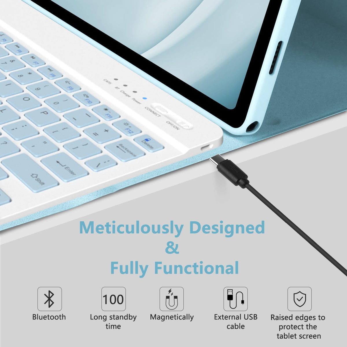 Keyboard Case For Samsung Galaxy Tab A9 Plus/A9+ 5G 11 Inch 2023, Samsung A9 Plus Tablet Case With Detachable Wireless Bluetooth Keyboard (Sm-X210/X216/X218) - Blue