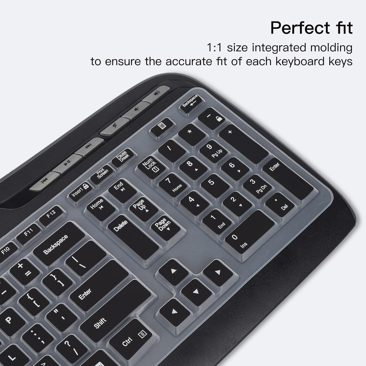 Q: Is the keyboard cover waterproof and dustproof?A: Yes, this keyboard cover features a waterproof and dustproof design, which helps protect your keyboard from spills, dust, and dirt, thereby extending its lifespan.