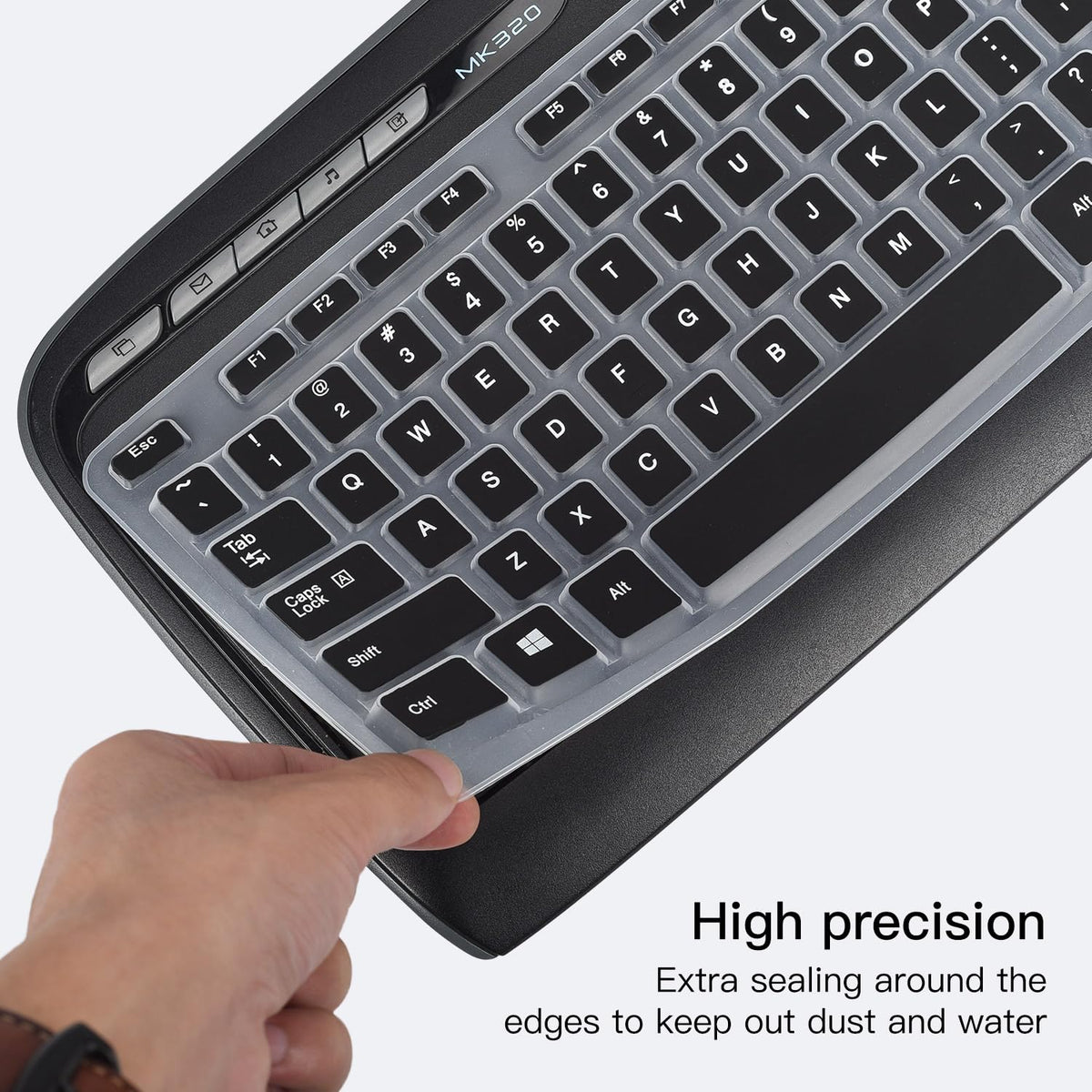 Q: Is this keyboard cover compatible with other Logitech models?A: The Keyboard Cover is specifically designed for Logitech MK320, K330, and MK335 Wireless Keyboards. For optimal fit and functionality, it is recommended to use it only with these models.