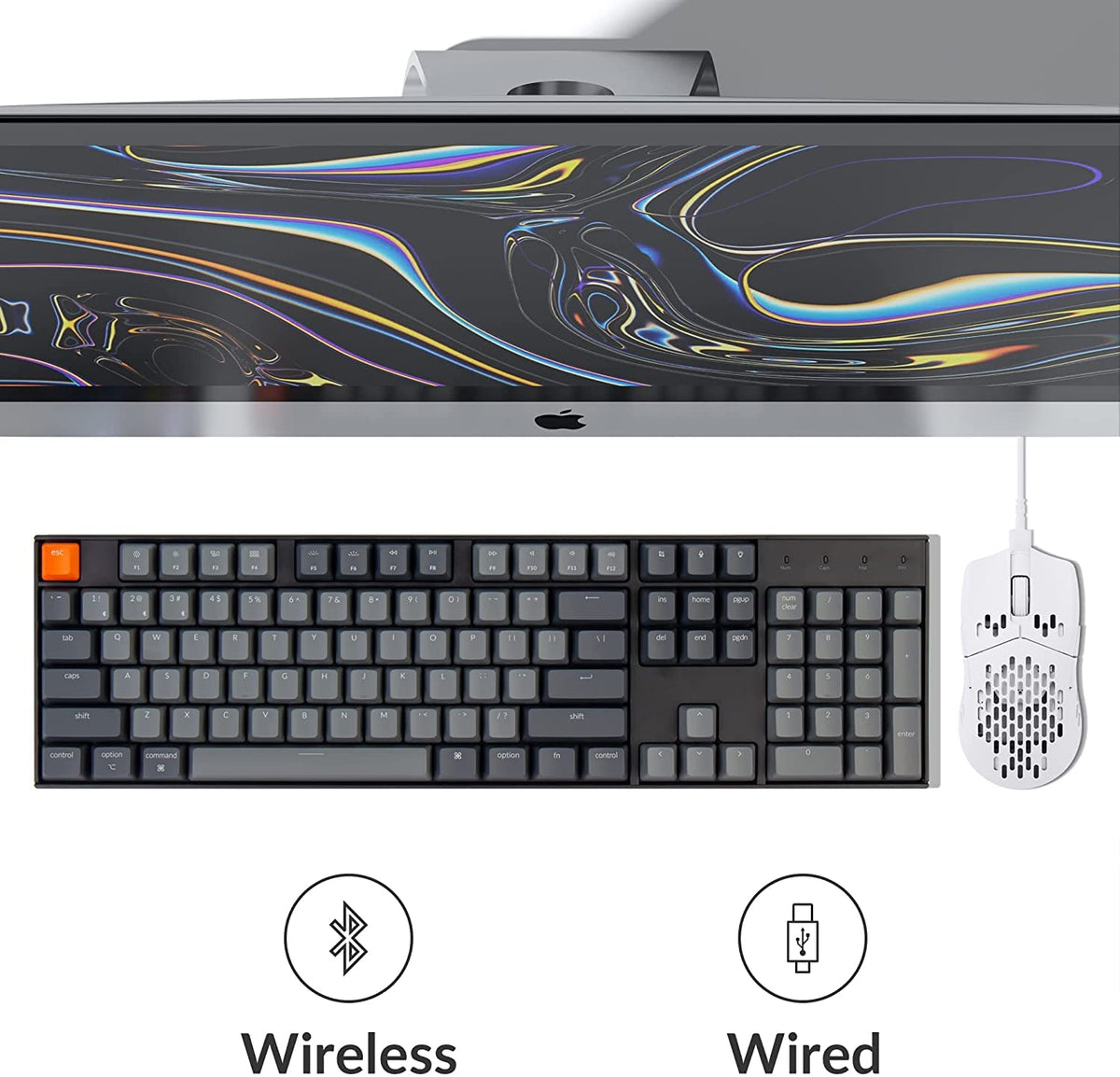 Q: What types of devices can the Keychron K10 connect to?A: The Keychron K10 can connect to up to 3 devices via Bluetooth 5.1, making it compatible with smartphones, laptops, and iPads. It also supports a wired connection through USB Type-C.