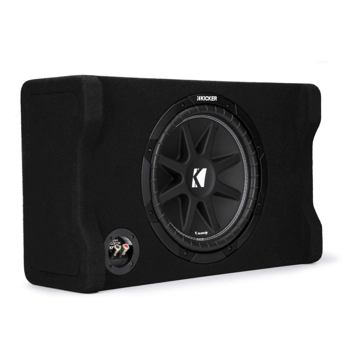 Kicker 48Cdf124 Comp 12'' Subwoofer In Down Firing Enclosure With Cxa400 Amplifier And Wire Kit - Bundle Includes A Kicker 48Cdf124 Comp 12'' Subwoofer In Down Firing Enclosure, 4-Ohm, A Kicker 46Cxa4001 Cxa4001 - 400-Watt Mono Class D Subwoofer Amp, A Kicker 47Vk8 Vk8 8Awg Complete Amplifier Wiring Kit With 2Ch Interconnects, And A Pry Kit. Kicker 48Cdf124 Comp 12'' Subwoofer In Down Firing Enclosure, 4-Ohm Kicker Comp Down-Firing Loaded Enclosures Gives You Affordable Big-Bass Performance - Without Taking Up Lots Of Room In Your Trunk Or Cargo Area. The High-Output Comp Down-Firing Enclosures Are Tough As Nails. Load Your Cargo Right On Top Of The Sub For Extra Space - With Plenty Of Bass! No Grilles Needed. With Full Perimeter Venting And Uniplate Back Plate And Pole Piece, The Comp Subwoofer Has Outstanding Thermal Management. A Stiff, Injection-Molded Cone With 360-Degree Back Bracing Keeps The Bass Smooth And Loud All Day Long. Built For Extreme Bass, This Kicker Sub Box Utilizes Extensive Internal Bracing, Thick Mdf Construction And Custom Embroidery. You Get The Kind Of Reliability And Great Looks That Make Showing Off Your Bass Easy - And Awesome! Model: Cdf12 Size: 12'' Impedance: 4 Power Handling (Rms): 150 Kicker 46Cxa4001 Cxa4001 - 400-Watt Mono Class D Subwoofer Amp Specifications: Power (Watts/Ch) 4 Ohm - 150X1 Power (Watts/Ch) 2 Ohm - 300X1 Power (Watts/Ch) 1 Ohm - 400X1 Cxrc Remote Bass Capable (Sold Sep.) - Yes Dimensions (In, Cm): (All Models 2-3/8, 5.9H X 6-3/4, 17W X ...L) - 8-1/8, 20.6 Frequency Response (Hz): 25-200, +0/-1Db Input Sensitivity: 250Mv-10V (Low Level), 1V-40V (High Level) Signal-To-Noise Ratio: >95Db, A-Weighted, Re: Rated Power Active Crossover: Variable Lo-Pass 50Hz-200Hz, 12Db/Octave Subsonic Filter: 25Hz @24Db/Octave Includes Kicker 47Vk8 Vk8 8Awg Complete Amplifier Wiring Kit With 2Ch Interconnects