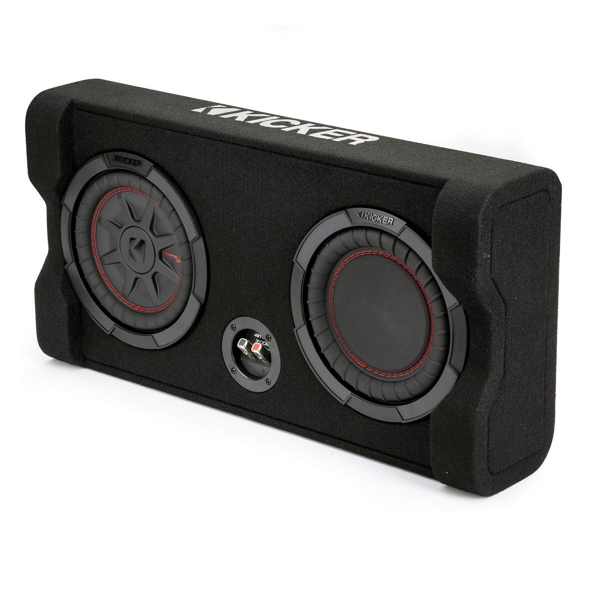Kicker Trtp 8-Inch Thin Down Firing Subwoofer And Passive Radiator Enclosure, 2-Ohm - 48Trtp82 The New Comprt Down-Firing Subwoofer Enclosures Make Surprisingly Strong, Smooth Bass In A Box Under Seven Inches Deep. Heat Is The Enemy Of Endurance. To Make Kicker Subs Even More Reliable, Kicker Engineers Developed Forced-Air Cooling To Help Kicker Comprt Subs Run 20 Percent Cooler.Heat Is The Enemy Of Endurance. To Make Kicker Subs Even More Reliable, Kicker Engineers Developed Forced-Air Cooling To Help Kicker Comprt Subs Run 20 Percent Cooler. Place The Trtp Under Your Truck Seat Or Cargo Area For Great Bass - No Grille Needed! Covered In Stylish Black Carpeting And Built With Thick Mdf, These Tough Enclosures Take Serious Power Without Taking Up Needed Space. Features - Thin-Mount Comprt Active Sub Internally Braced Enclosure Provides Ultimate Protection High-Output Reflex Passive Woofer Boosts Output Factory-Optimized Enclosure For Big Bass Resists Stacking Weight, Nicks Or Scratches Extremely Compact Design With Drivers Hidden, Becoming A Part Of The Vehicles Makeup True, Hard-Hitting Kicker Bass From A Shallow-Mount Design New Comprt Features Forced-Air Cooling - 20% Cooler For Increased Reliability High-Output Reflex Passive Woofer Intensifies Bass Output Easily Mounts In Cargo Area, With No Space Issues Specifications - Woofer Size [In, Cm] - 8, 20 Impedance [Ohms Dvc] - 2 Rec. Amplifier Power [Watts Rms] - 300 Peak Power Handling - 600 Frequency Response [Hz] - 30-500 Height Installed [In, Cm] - 5-3/8, 13.8 Width [In, Cm] - 12-1/4, 31 Length [In, Cm] - 23-5/8, 60