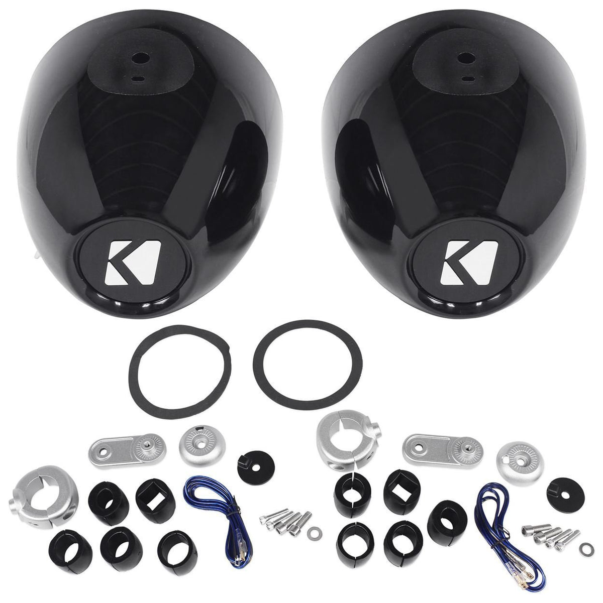 This Bundle Includes A Pair Of Kicker Black Mini Wake Tower Enclosures Loaded With A Pair Of Kicker Dsc 4'' 4 Ohm Coaxial Speakers. Spectacular Highs And Midrange Sounds Coupled With The Simplest Of Speaker Installations, Provide Full-Range Audio Specifically For A Powersport Environment. Kmmtes Enclosures- Billet-Aluminum Pipe-Clamps Mini Extension Arm Durable Terminal Connectors For Single And Dual Sets Of Drivers Weather-Proof 9-Degree Axis Rotation 7/8''-1-1/4'' Round Tubing 1'' Square Tubing Kicker 4 Inch D- Series Speakers 41Dsc44D-Series Coaxial And 3-Way Speakers A Drop-In Coaxial Upgrade With The Flexibility To Fit Nearly Nay Vehicles Doors For A Vast Improvement Over Factory Sound. Compatible Featuring Eight Sizes, The Speakers Are Designed To Fit Virtually Every Make And Model Of Vehicle Without Modification. Thin Is In Thin-Profile Woofers Avoid Obstructing Car-Window Mechanisms And The 13Mm Polyethylene-Naphthalate Domed Tweeters Have Zero-To-Minimal Tweeter Protrusion. Highly Sensitive The High-Sensitivity Motor Structures Of The Woofers Are Made To Deliver Increased Volume Output Despite Lower-Powered, Factory Head Units, But They Also Handle The High Power From Add-On Amps. Engineered For Performance The Midrange Woofers Stiff, Polypropylene Cones And Acoustic-Foam Surrounds Provide Optimal Performance.Speaker Size 4'' Design 2-Way Tweeter Design Dome Tweeter Size 1/2'' Tweeter Composition Polyethylene-Naphthalate Woofer Composition Polypropylene Woofer Surround Foam Peak Power Handling 120 Watts Rms Power Handling 30 Watts Sensitivity 88 Db Frequency Response 60 - 20000 Hz Impedance (Per Voice Coil) 4 Ohms Top-Mount Depth 1-13/16'' Cutout Dimensions 3-3/4''