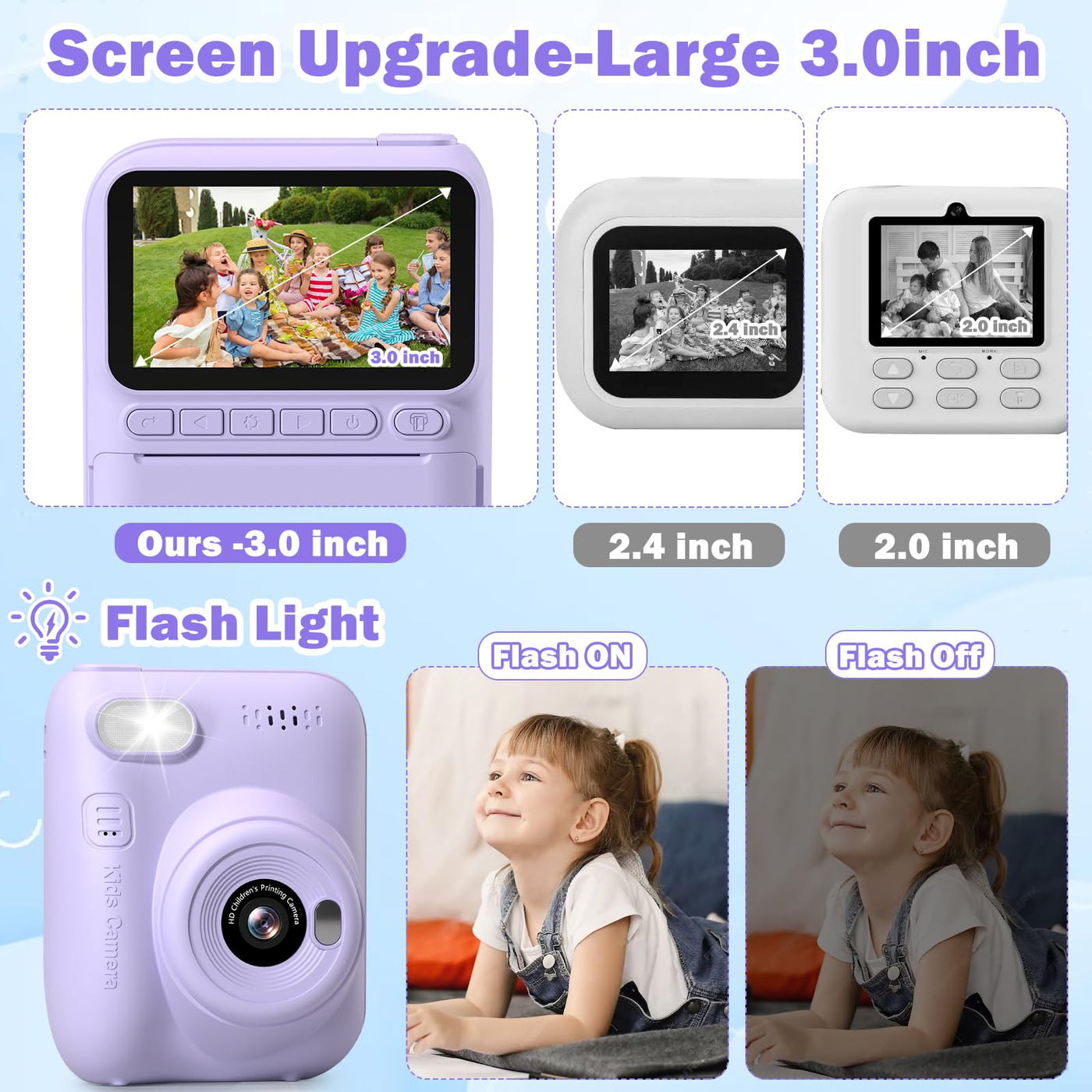 Kid Camera Instant Print, Birthday Gifts For Girls And Boys, Kids Digital Camera Toys, 1080P Hd Video, 3 4 5 6 7 8 9 10 11 12 Ye