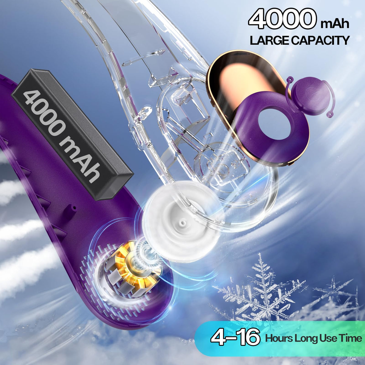 Q: How long does the KIDEE Neck Fan run on a full charge?A: The KIDEE Neck Fan is equipped with a 4000mAh battery that can provide up to 16 hours of operation on a full charge, depending on the speed setting used.