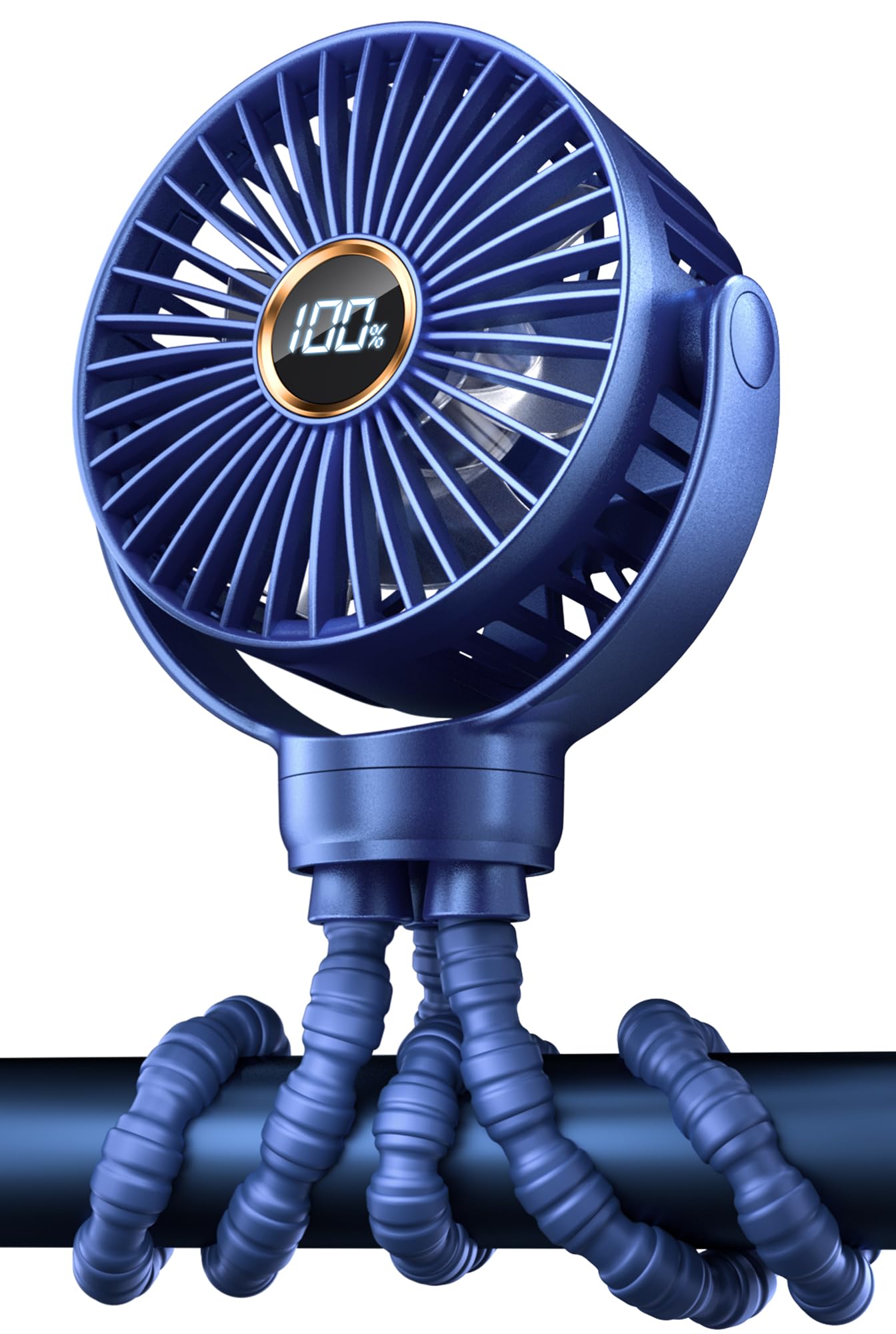 Kidee Portable Baby Stroller Fan, Mini Baby Fan Clip On Fan, Led Display, 360 Rotate Flexible Tripod, Rechargeable Small Persona