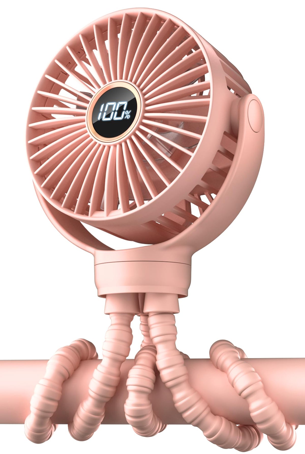 Kidee Portable Stroller Fan, Mini Baby Fan Battery Operated, Led Display With 3 Speeds, Small Clip On Fan Desk Fans Usb Recharge
