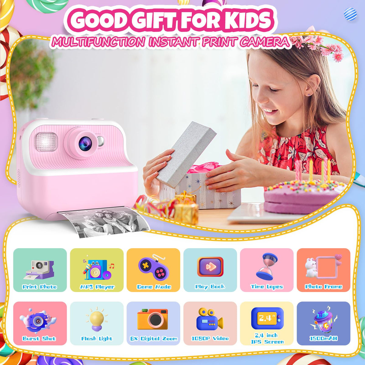 Kids Camera Instant Print,1080P Hd Instant Photo Camera Christmas Birthday Gifts For Girls Age 3 12,Toddler Camera Toys For 3 4