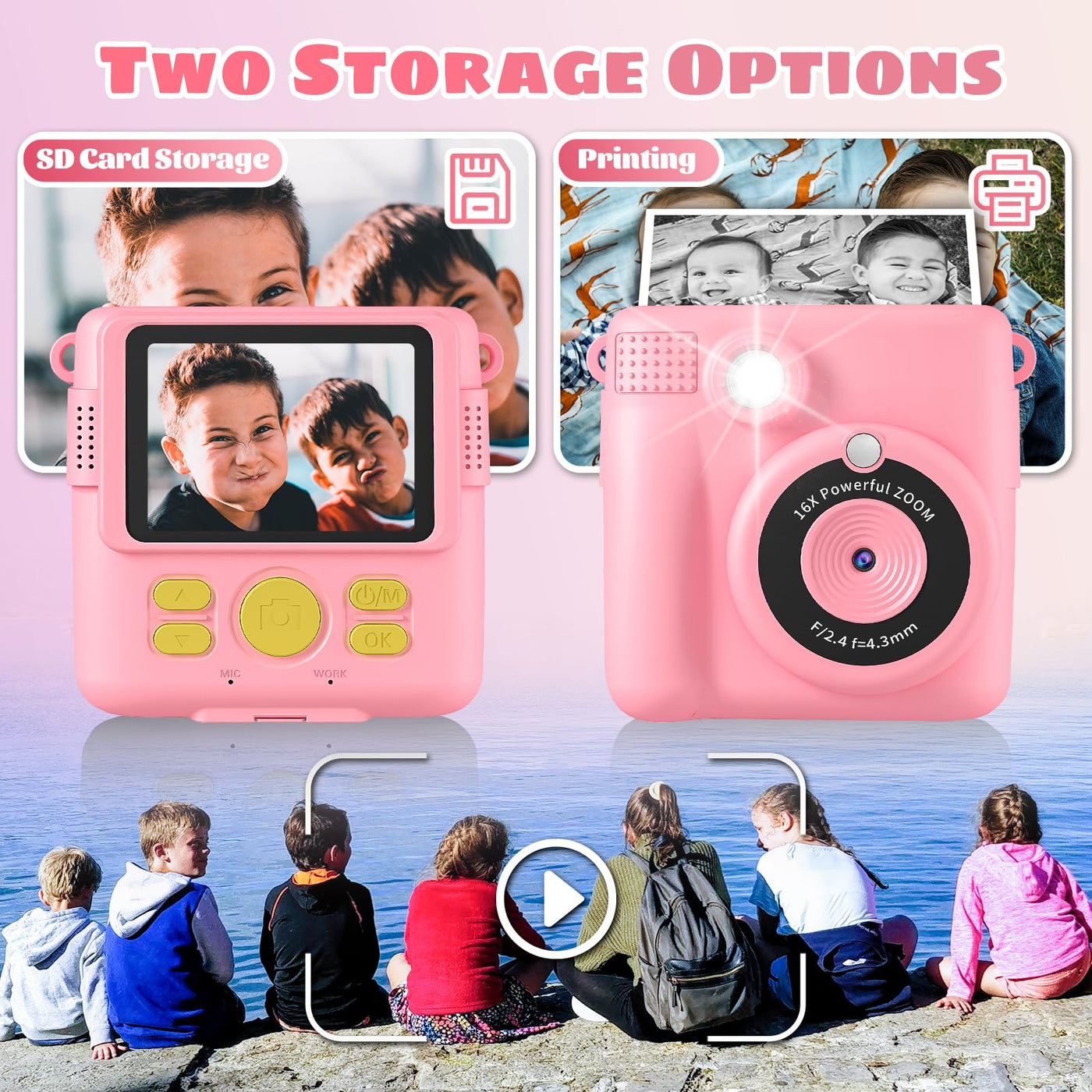 Kids Camera, Instant Print Camera 2.4 Inch Screen 1080P Digital Camera With 16X Digital Zoom, 32Gb Tf Card For 3 13 Boys And Gir